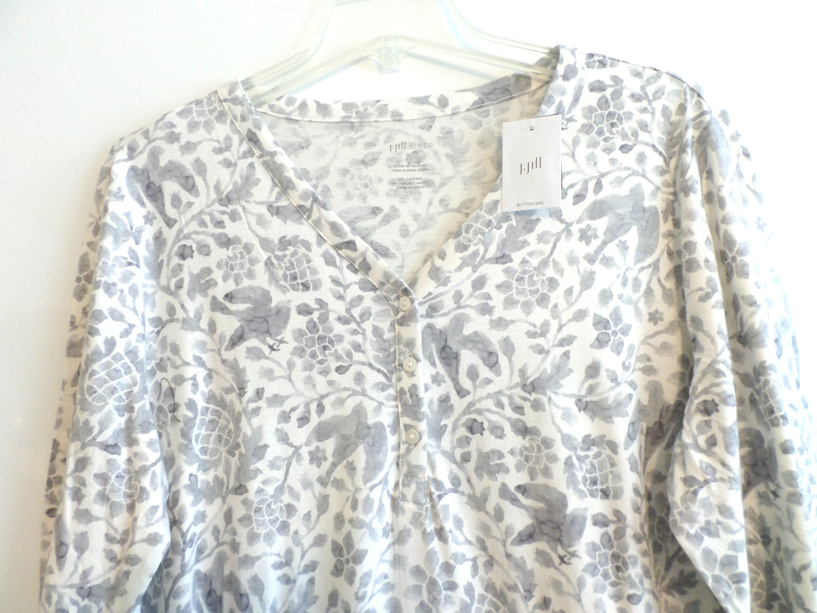 как выглядит NWT J JILL SLEEP ULTRASOFT LS VNECK LONG NIGHTGOWN-LG-ZINC HOLLY BIRDS-NICE фото