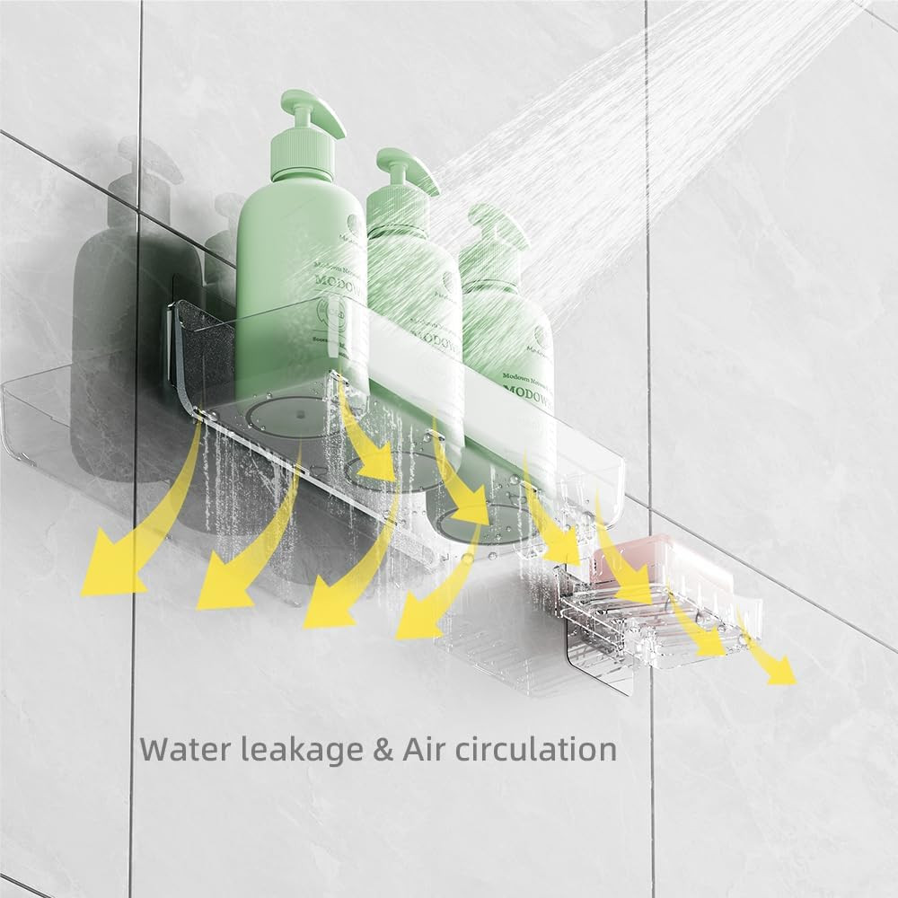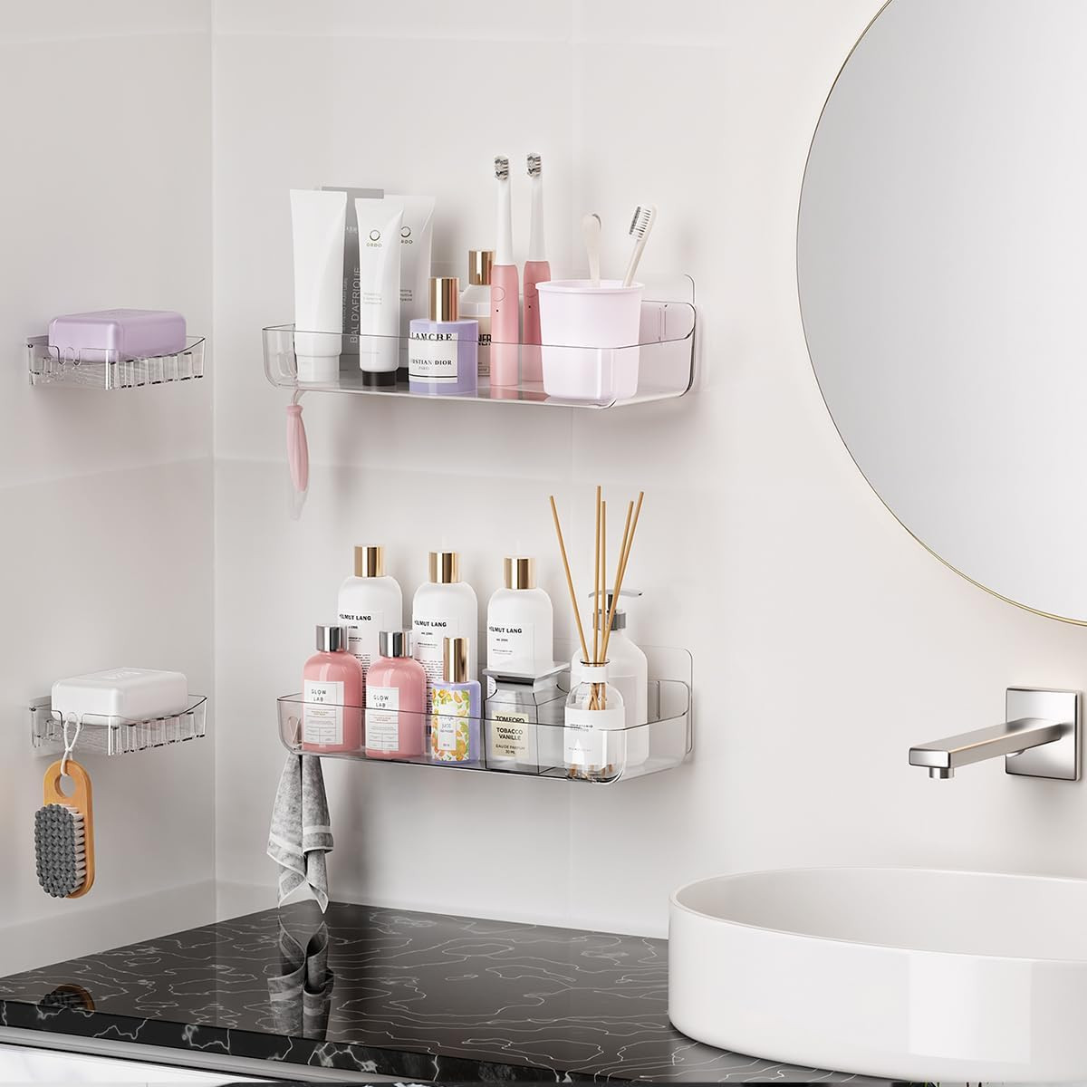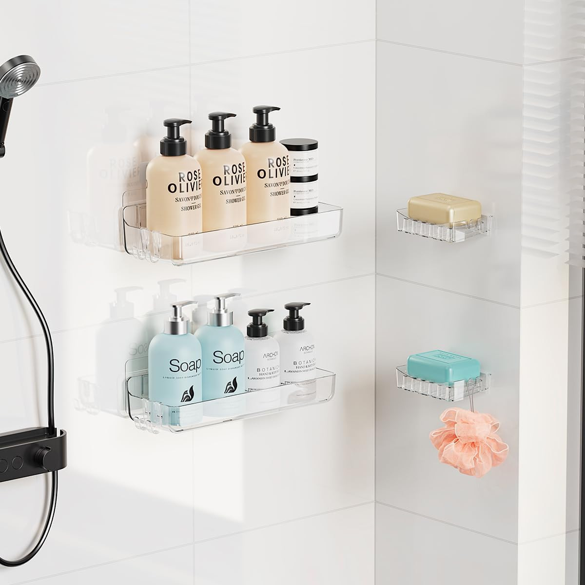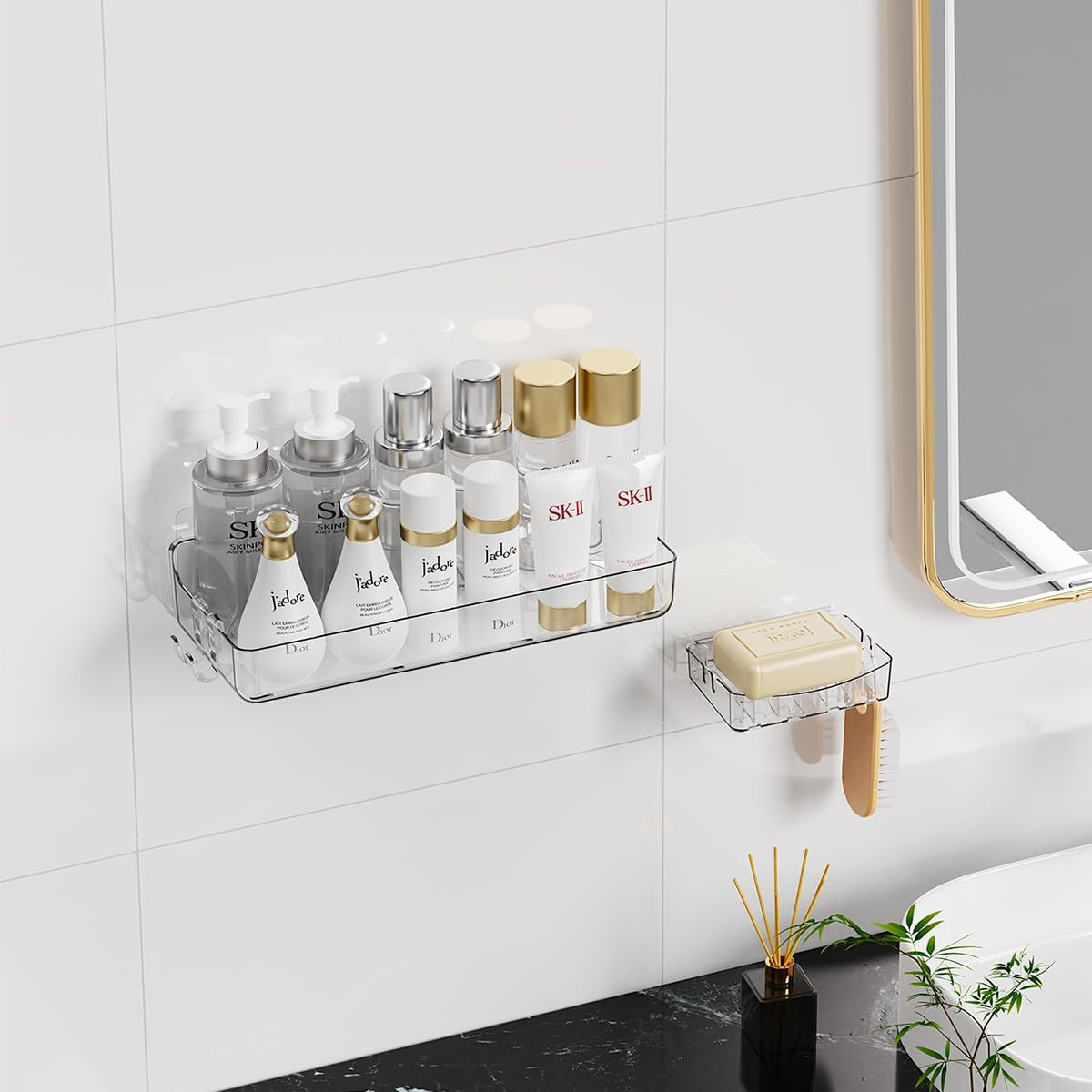 Clear Shower Caddy Acrylic Wall Mounted Shelves Soap Dish Adhesive Pads Bathroom