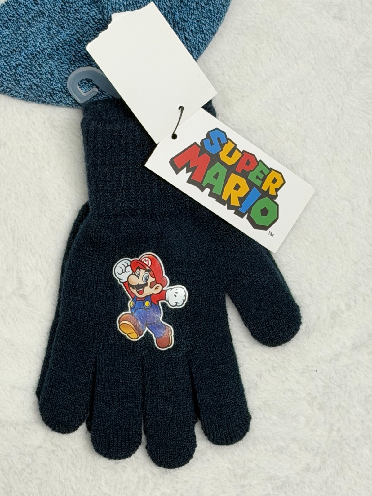 как выглядит Super Mario Bros Nintendo NWT Knit Youth Hat Gloves Set Cuffed Pom Beanie фото