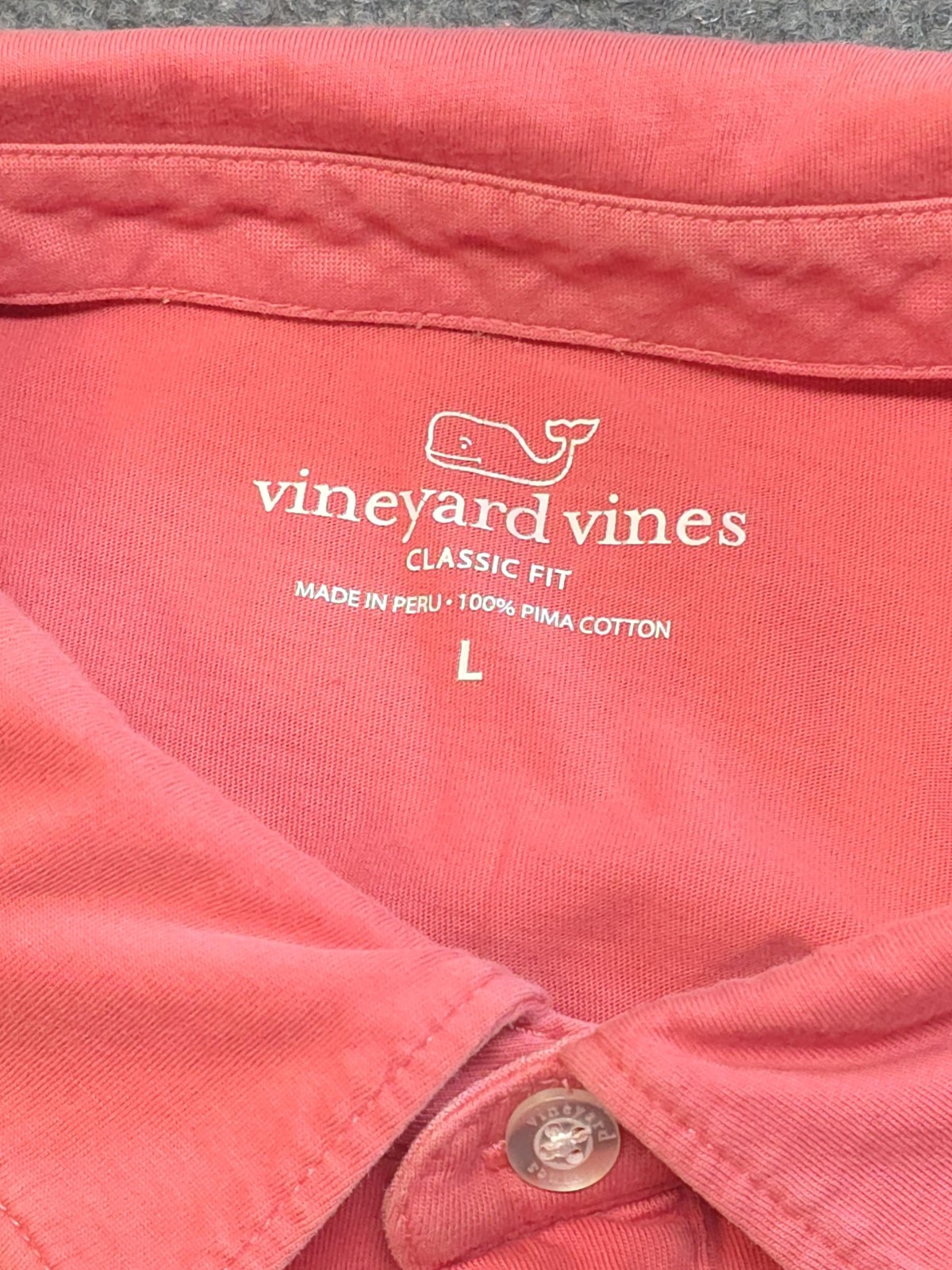 Vineyard Vines Polo Shirt Mens Large Pink Classic Pima Cotton Pocket Whale Logo