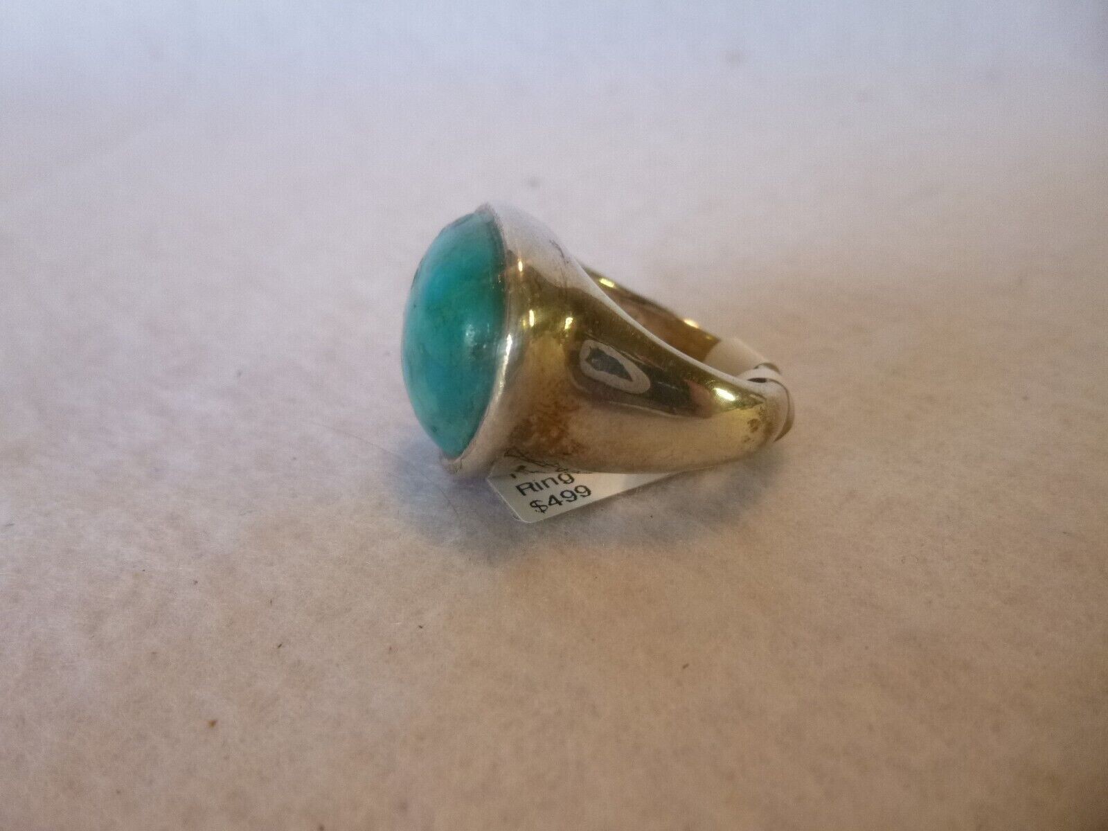 как выглядит Natural Turquoise And 925 Sterling Silver Native American Southwestern Ring Sz 7 фото