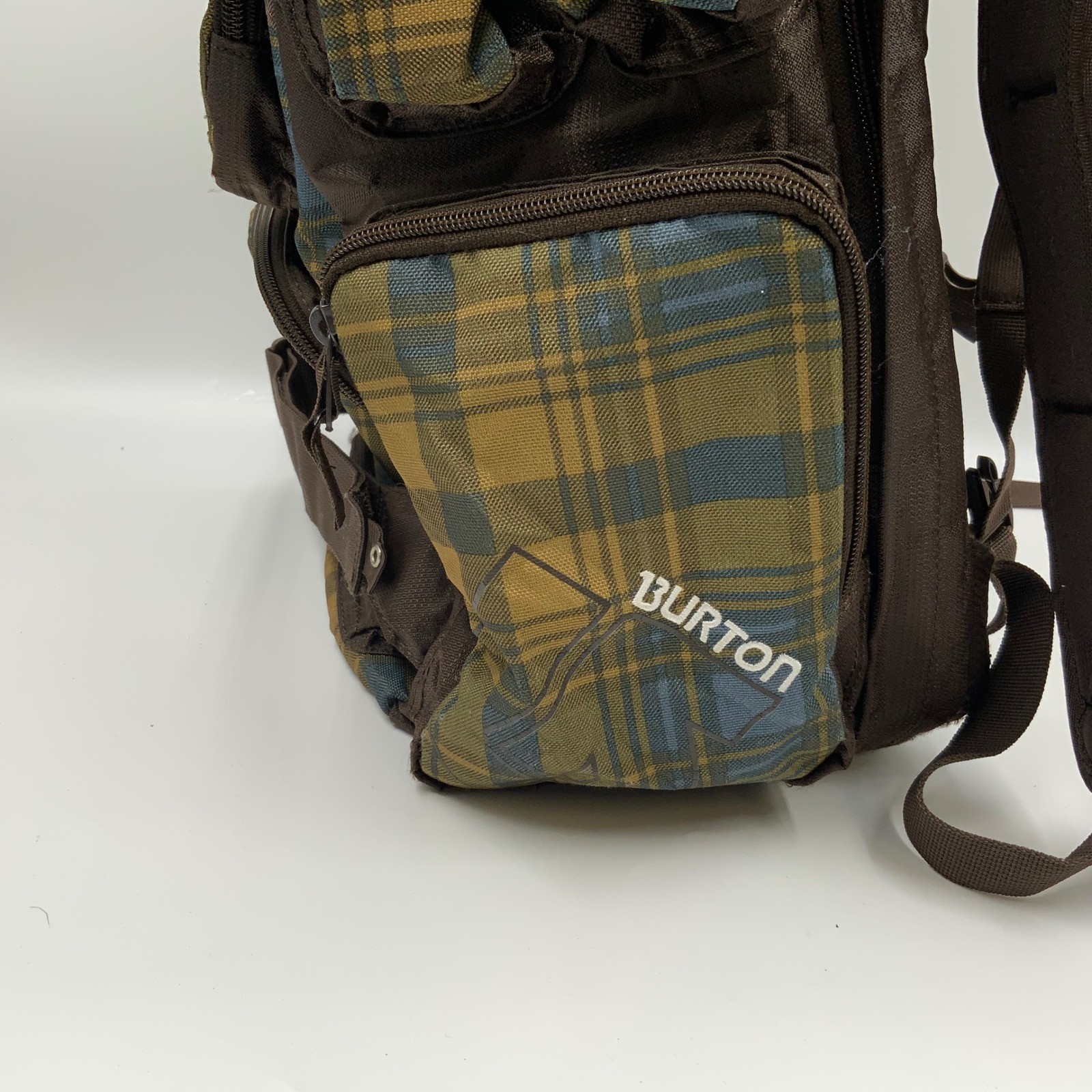 Burton Treeline Plaid Backpack Brown Blue Skate Straps 15in Laptop Sleeve Mens