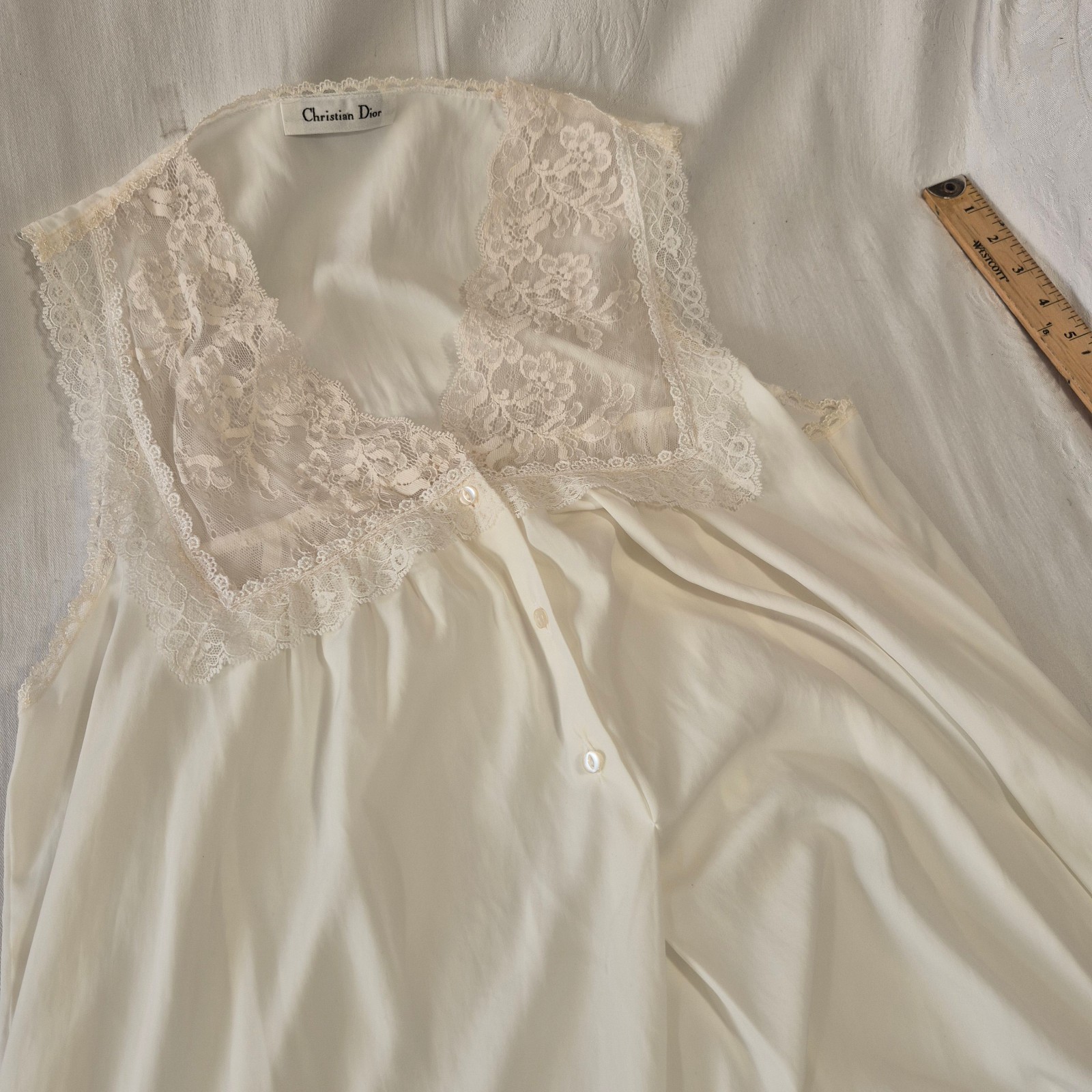 как выглядит VTG Christian Dior Nightgown intricate lace detailing and buttons Made In USA M фото
