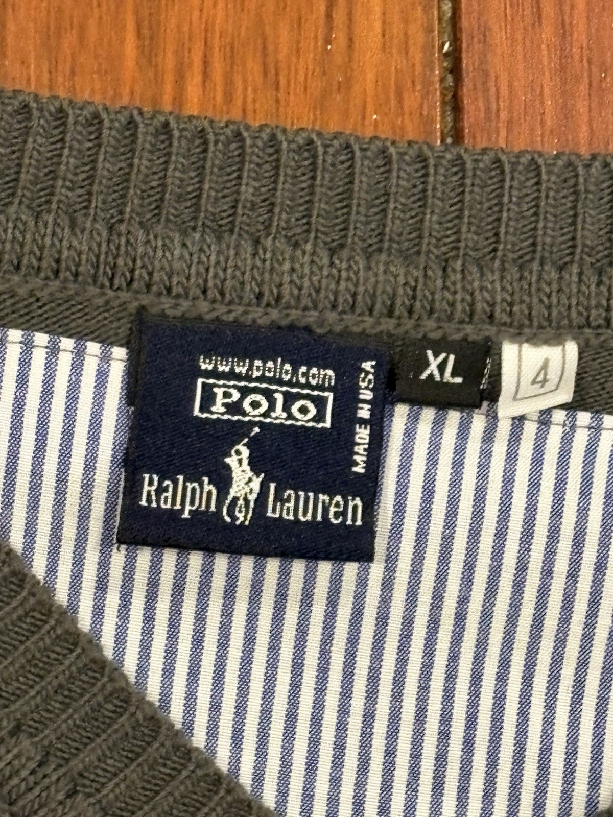 Vintage Polo Ralph Lauren Made In USA Big Pony V Neck Sweater XL Gray