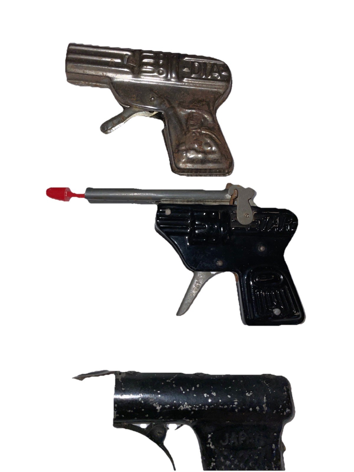 как выглядит Vintage Pressed Steel cap gun pistol Lot, Giant, Swallow, More JAPAN tin Working фото