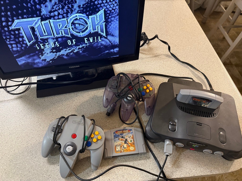 Nintendo 64 N64 Bundle w/ Cords, 2 Controllers 2 Games - Tested TUROK STAR W