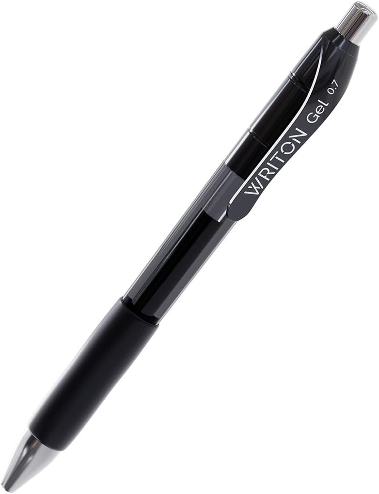 Retractable Gel Pens, Comfort Grip, 0.7mm Fine Point, Black Ink, 12 Pack