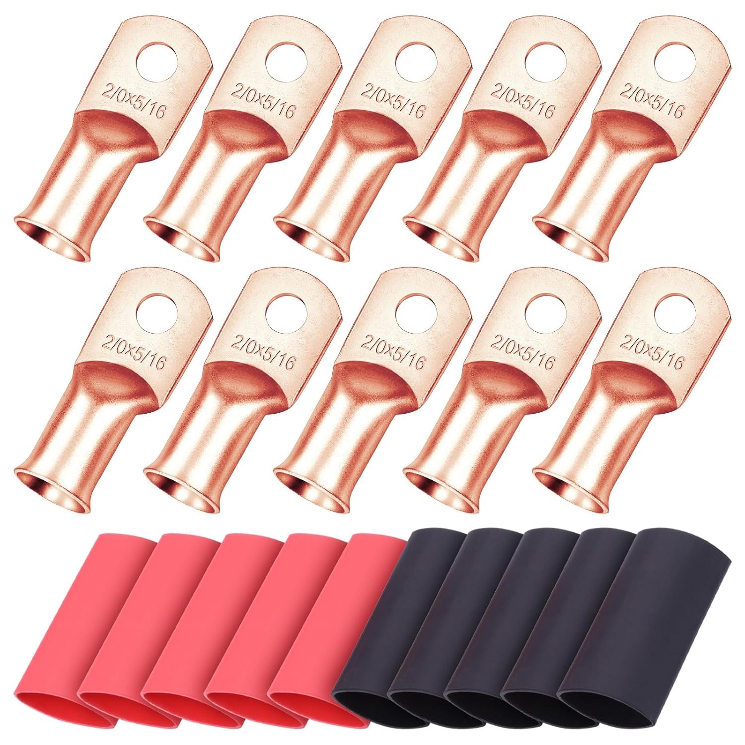 10pcs 2/0 AWG 5/16 Wire Lugs Ring Terminals with10pcs 3:1 Dual Wall Heat Shrink