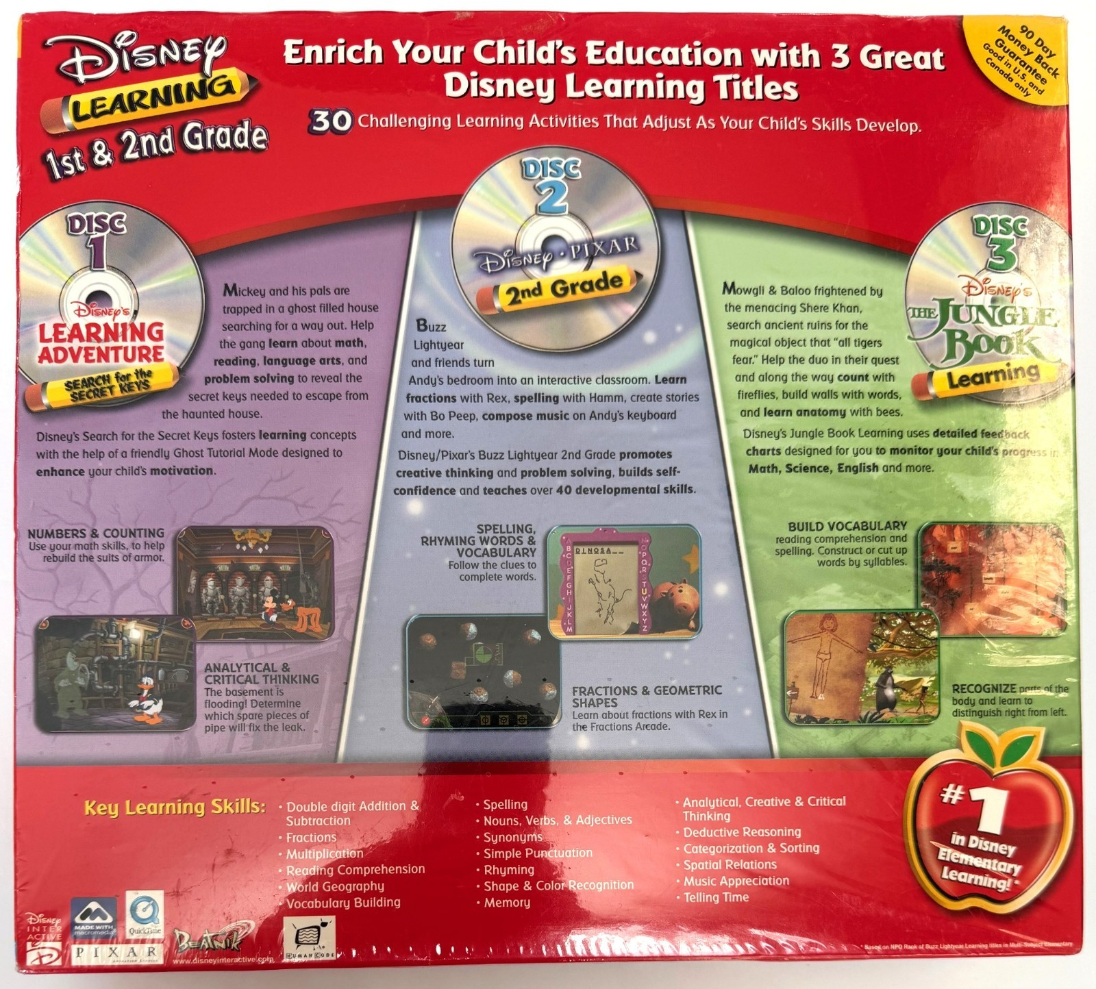 Disney Learning 1st 2nd Grade Educational CD-ROMs Math, Sci, Reading BRAND NEW