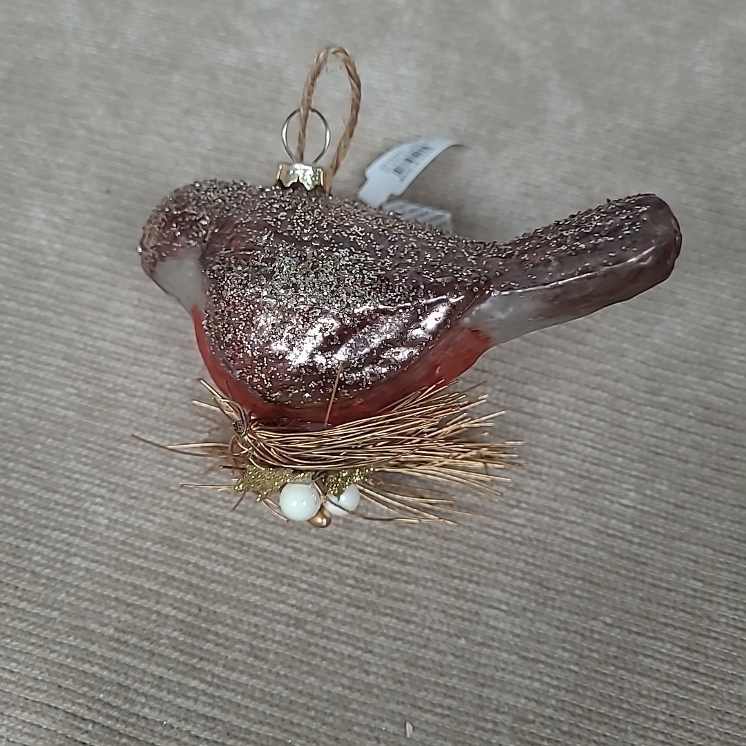 как выглядит NWT Pottery Barn Glass Gold Glitter Bird Ornament фото