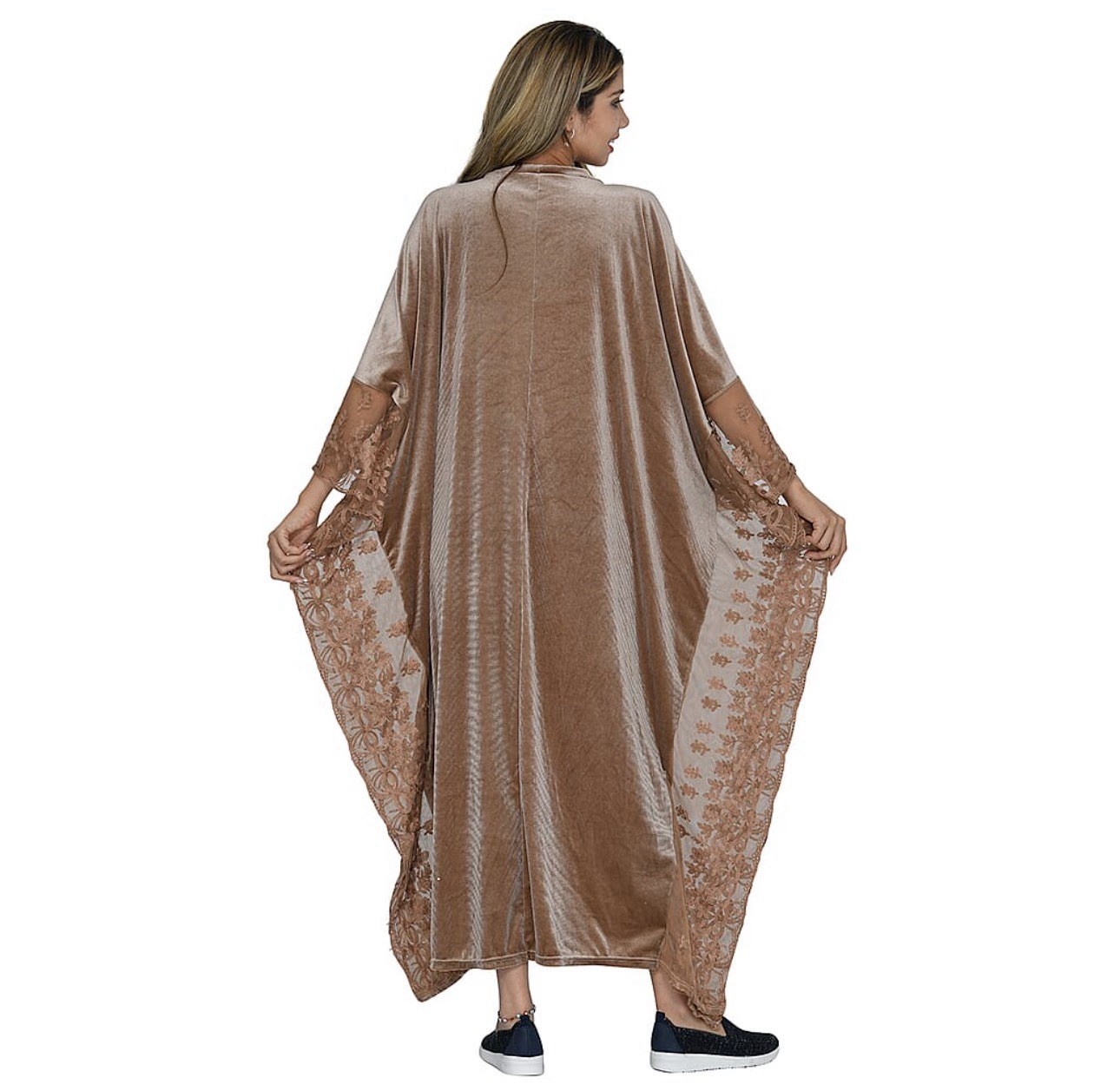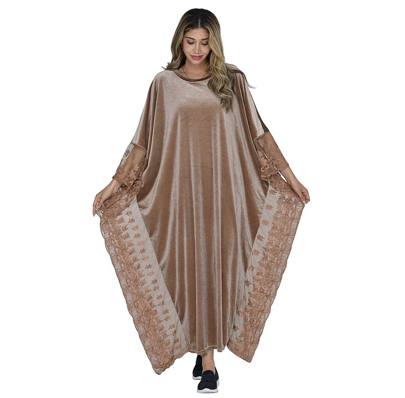 как выглядит Luxury Stretch Caramel Color Velvet Kaftan with Lace One Size Fits Most фото