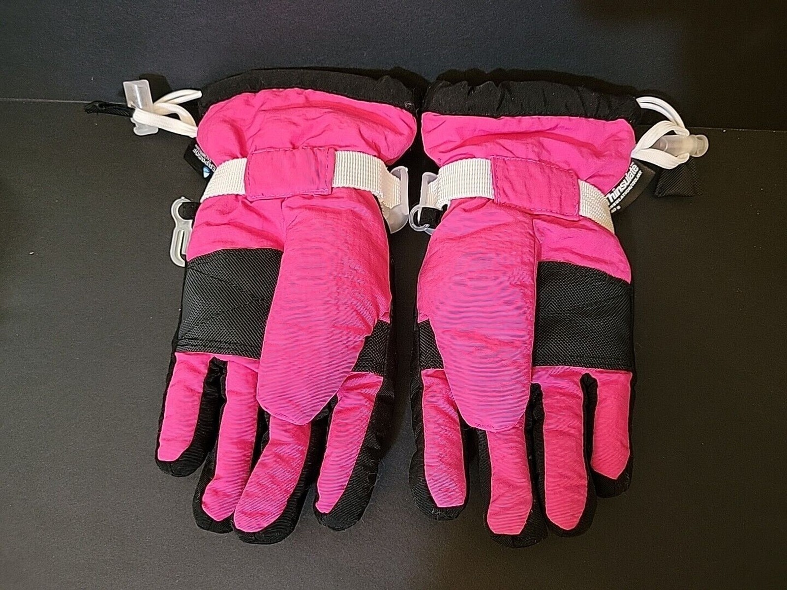Girls Snow Gloves Size 4 - 6x Unisex Pink White Black Thinsulate USED - GOOD