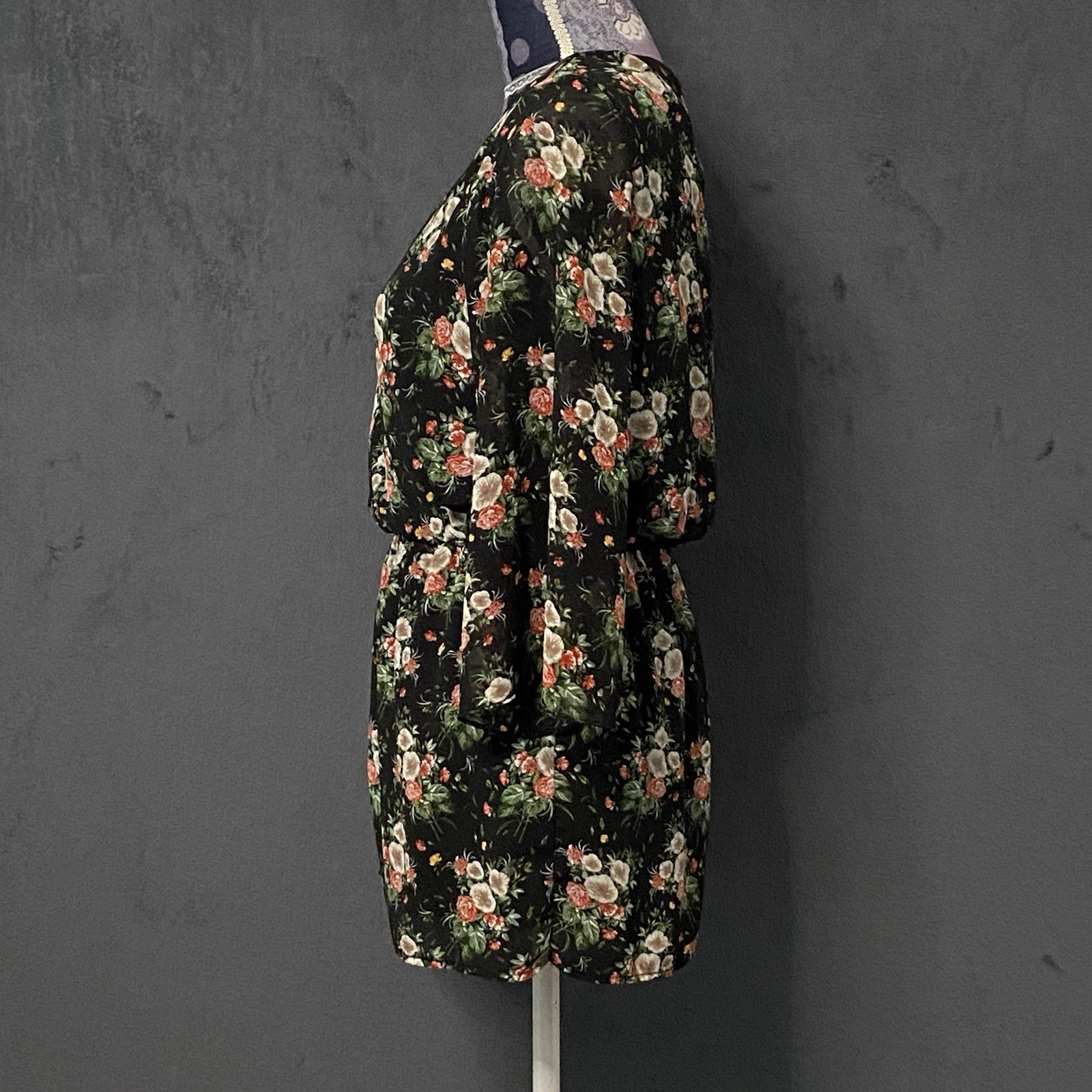как выглядит Everly Surplice Romper Women S Black Moody Floral Dark Bohemian Long Bell Sleeve фото