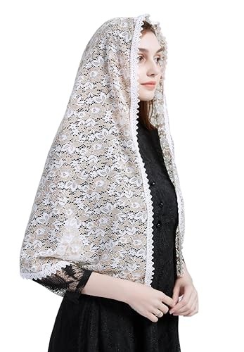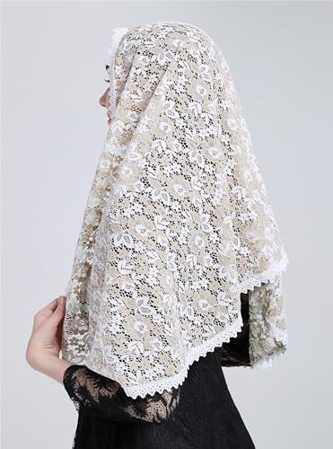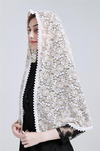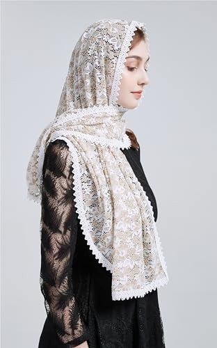 Lace Shawl Wrap for women Floral Lace Veil Church lace mantilla catholic Beige