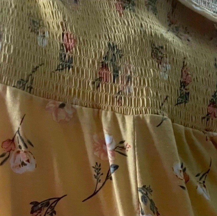 как выглядит Elegant Floral tie front with overlay smocked open back yellow wide leg Jumpsuit фото