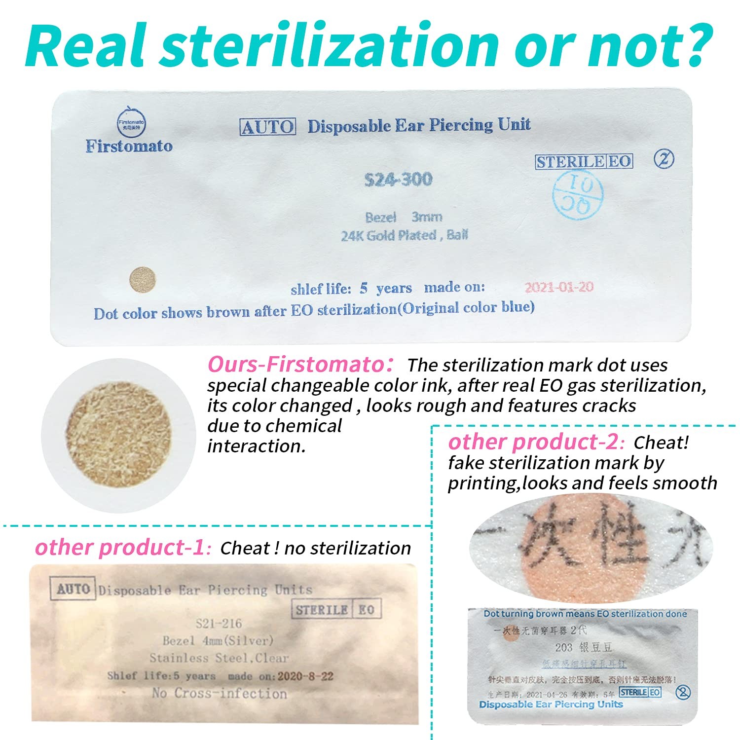 Firstomato 2PCS Disposable Ear Piercing Kit 3.0mm, Ball,24Kt Gold