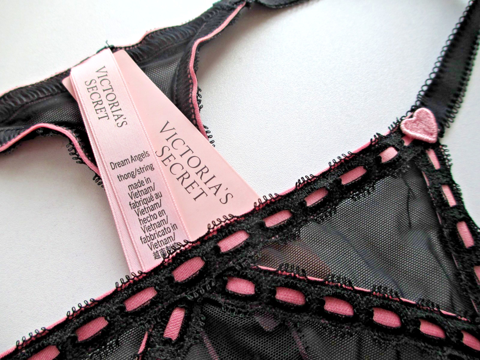 как выглядит VICTORIAS SECRET DREAM ANGELS Pink Ribbon Black Open String Thong Panty M L XL фото
