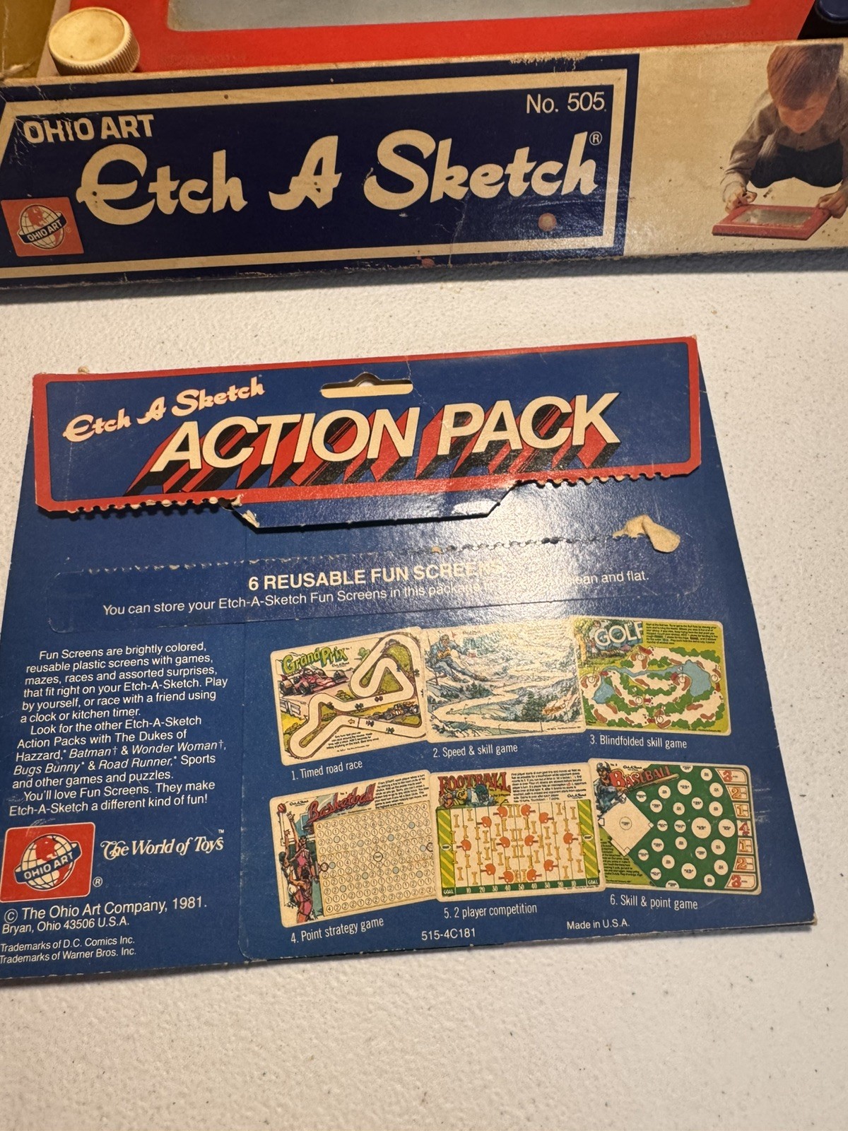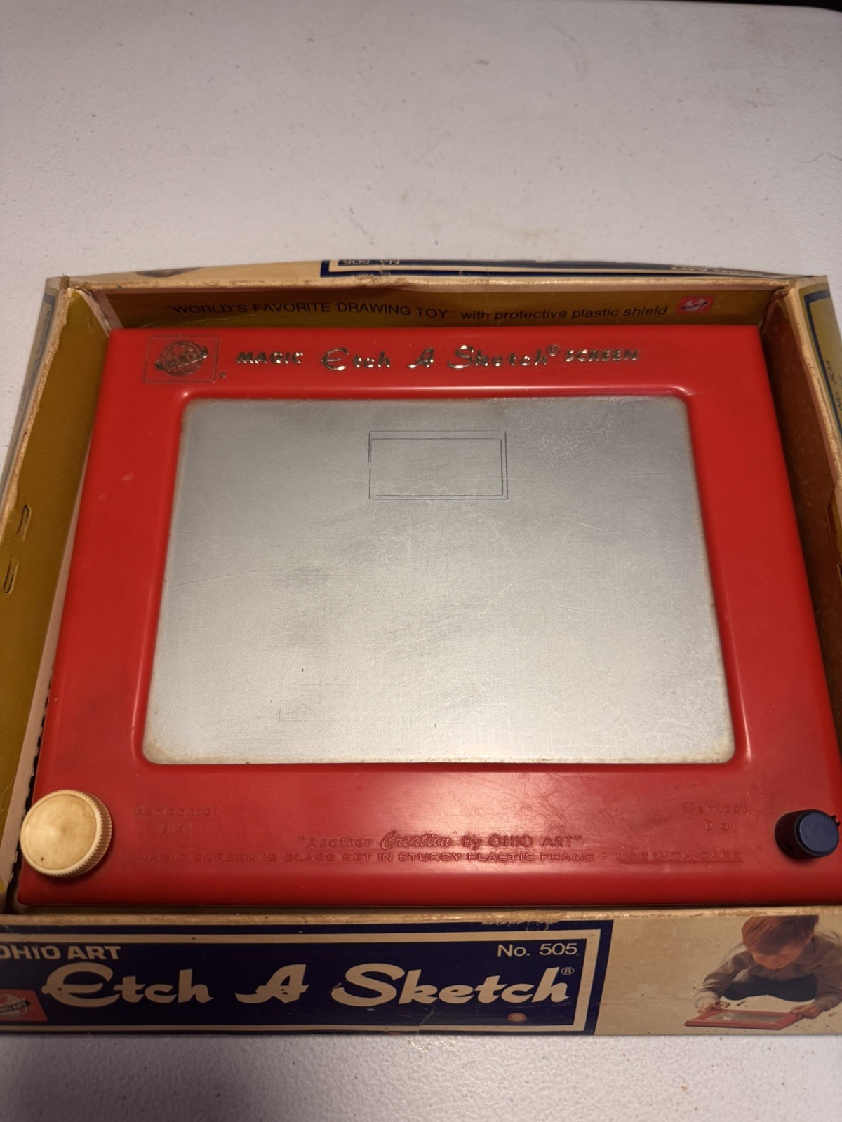 Vintage 1960 s Etch-A-Sketch No.505 Original box, pamphlet, and action pack
