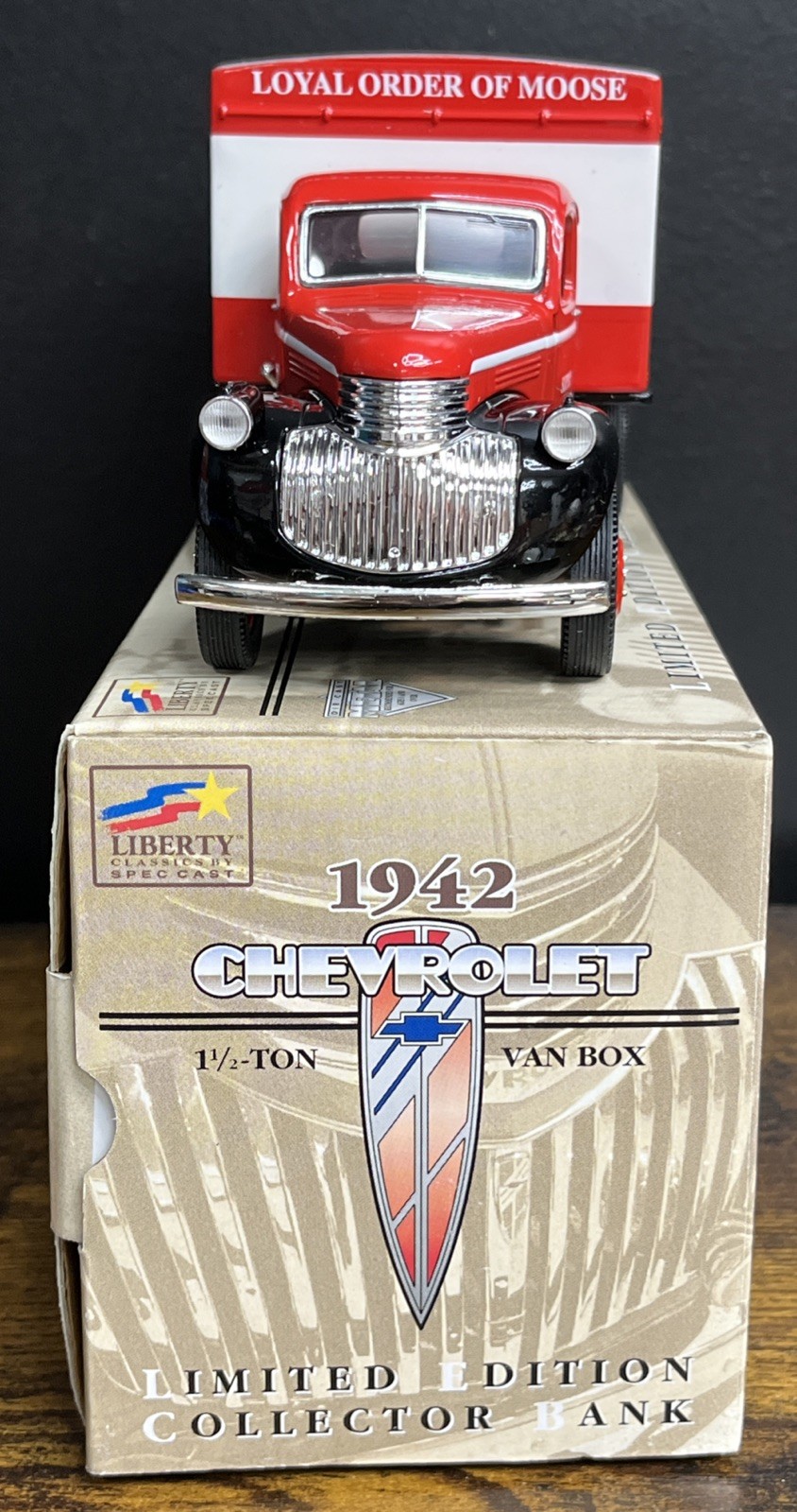 Liberty Classic 1942 Chevy Van Box Mooseheart Supply Truck Coin Bank DieCast NIB