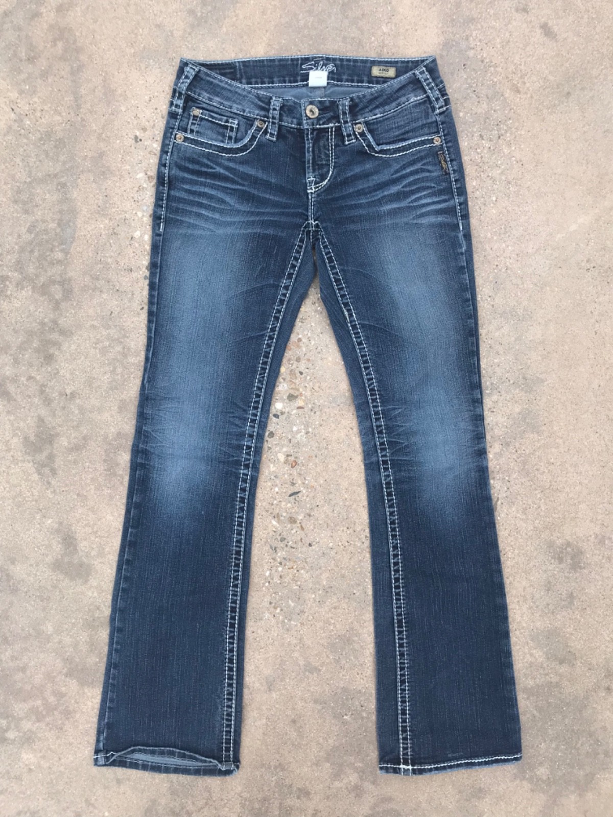 как выглядит Silver Aiko Bootcut Jeans Womens 28W x 31L Blue Denim Medium Wash Stretch Pant фото