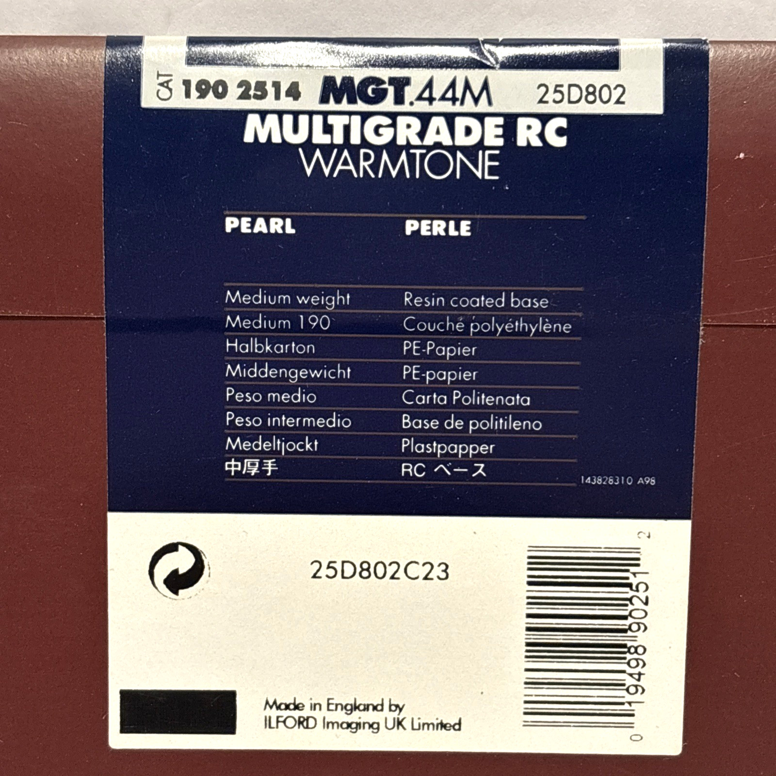VTG Darkroom ILFORD Multigrade RC Warmtone 8x10 Pearl Photo Paper 25 Sheets
