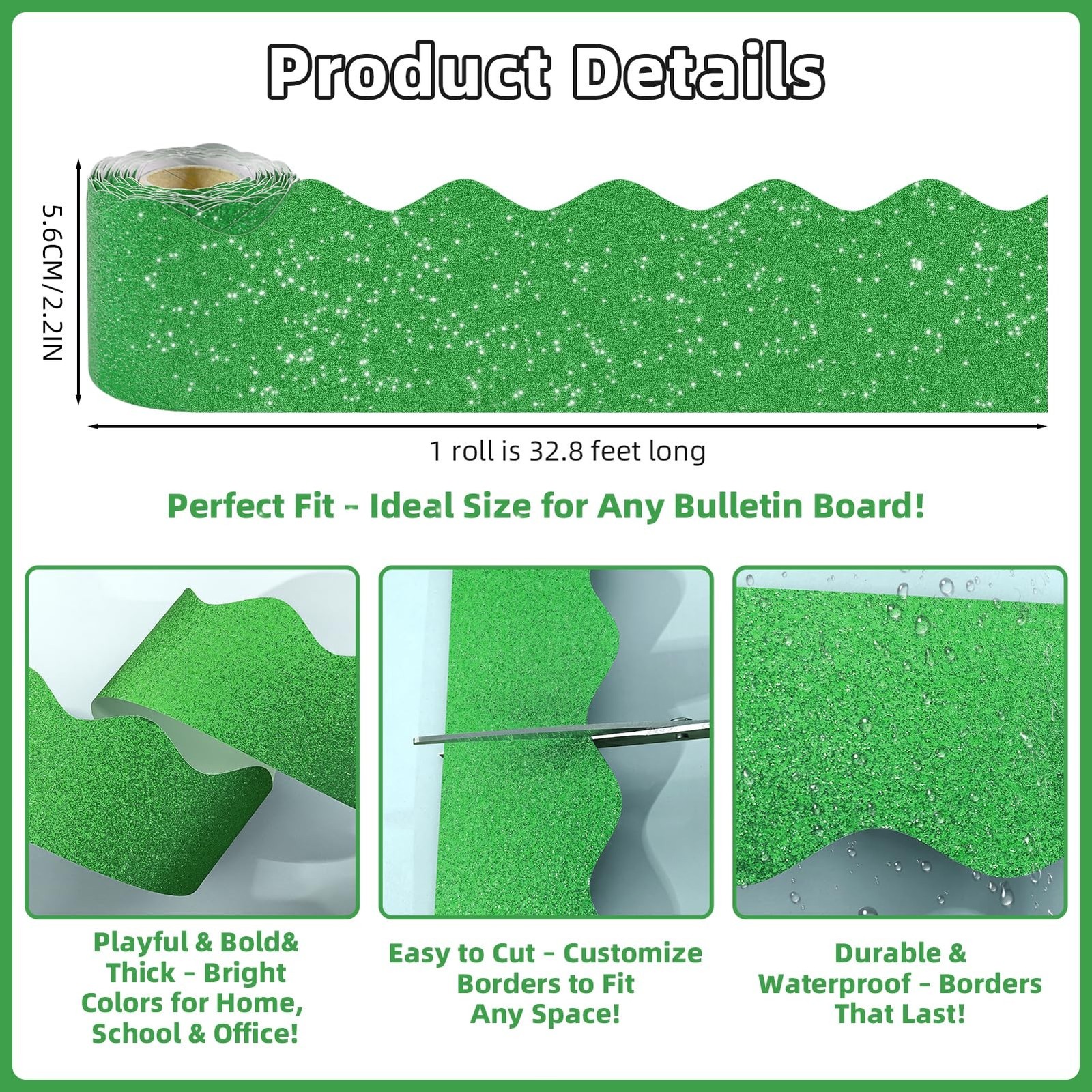 8 Rolls 262.4 Ft Glitter Bulletin Board Borders - Colorful Scalloped Poster B...