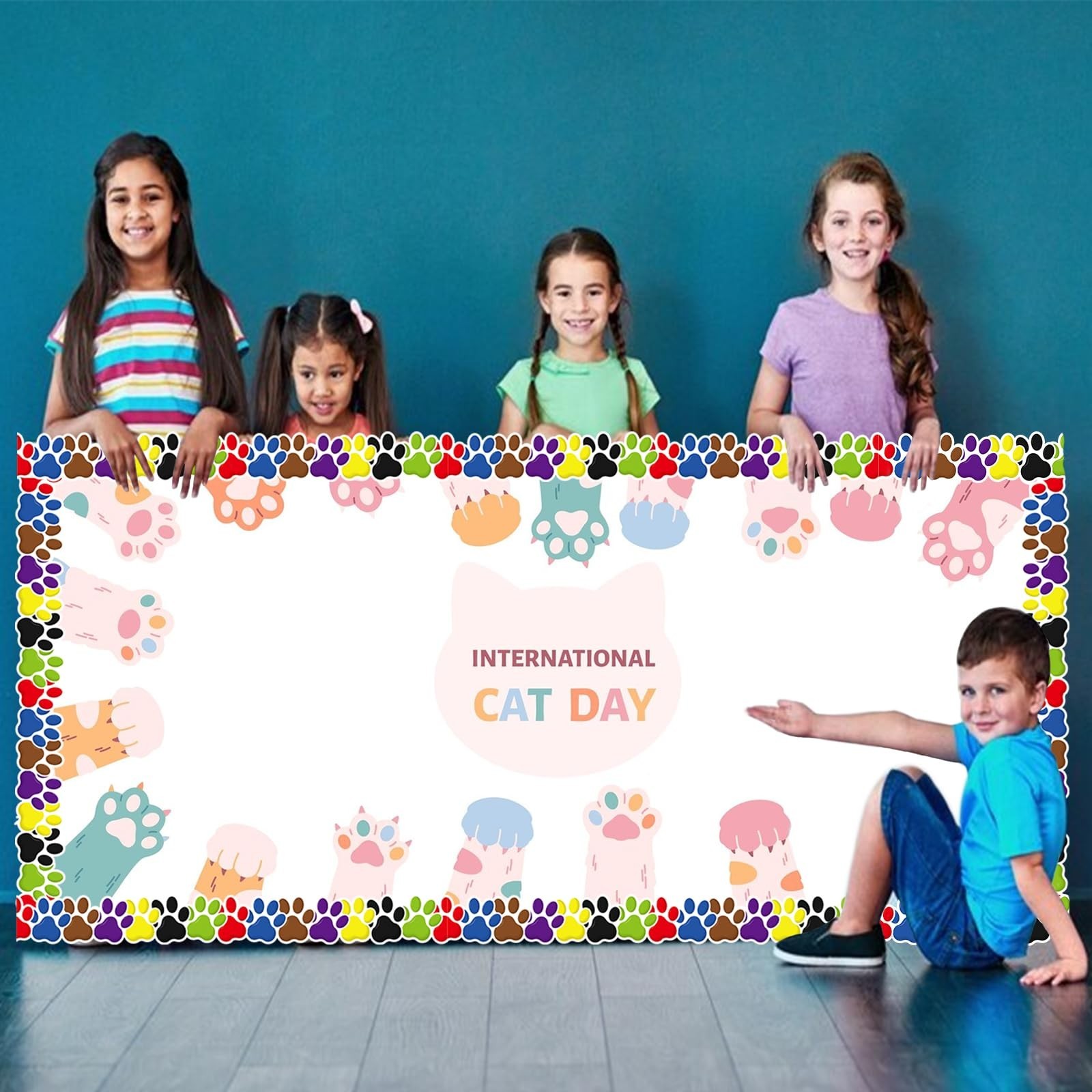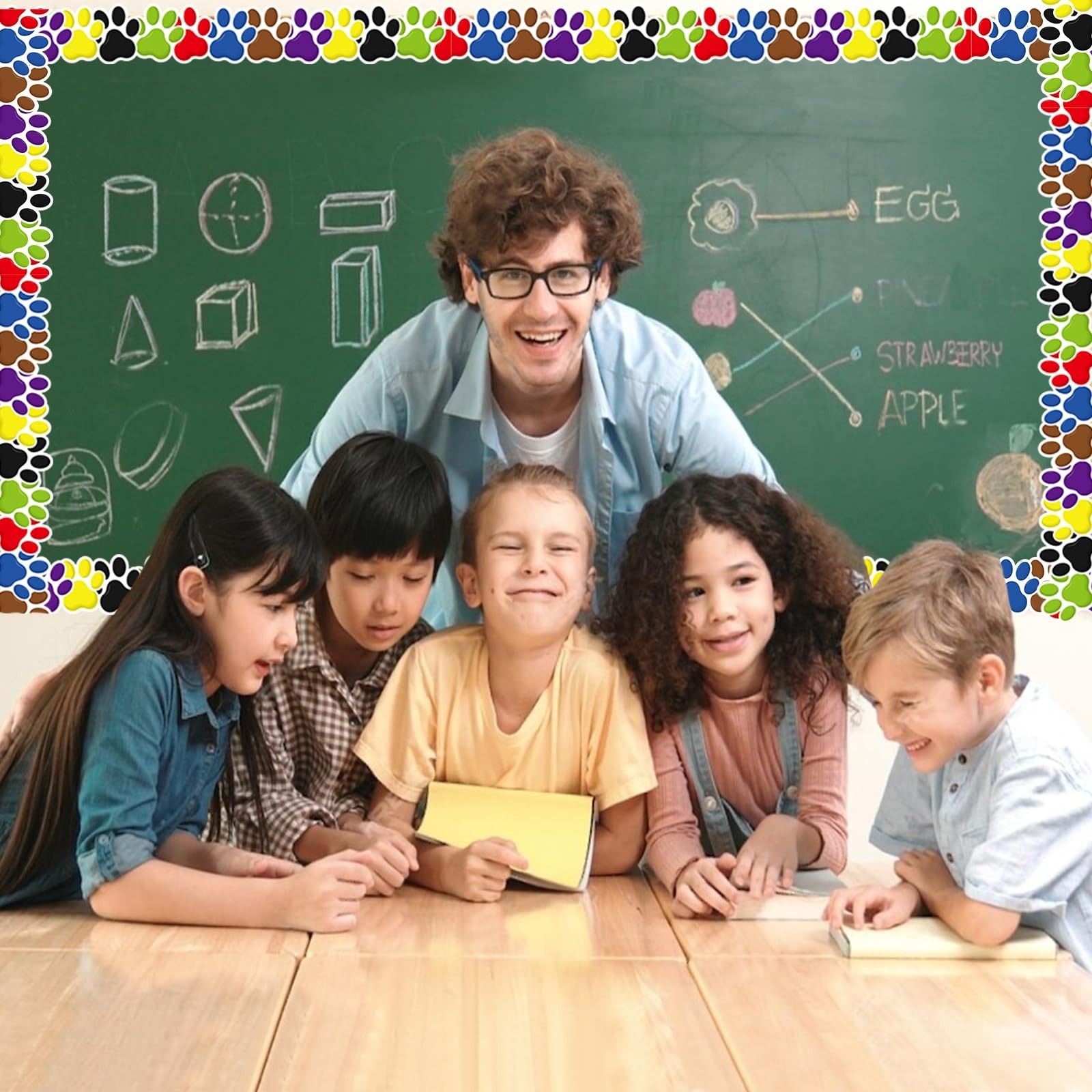 как выглядит 65.6Ft Paw Print Bulletin Board Borders, Colorful Dog Paw Theme Die Cut Trim ... фото
