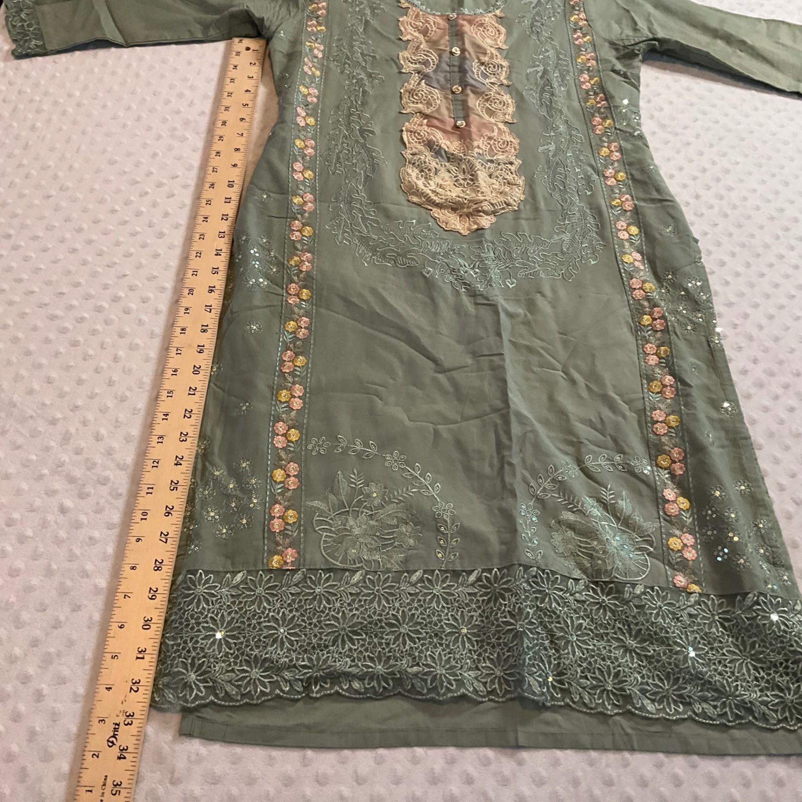 как выглядит Embroidered Kurti Tunic Dress Indian Pakistani Ethnic Floral Green фото