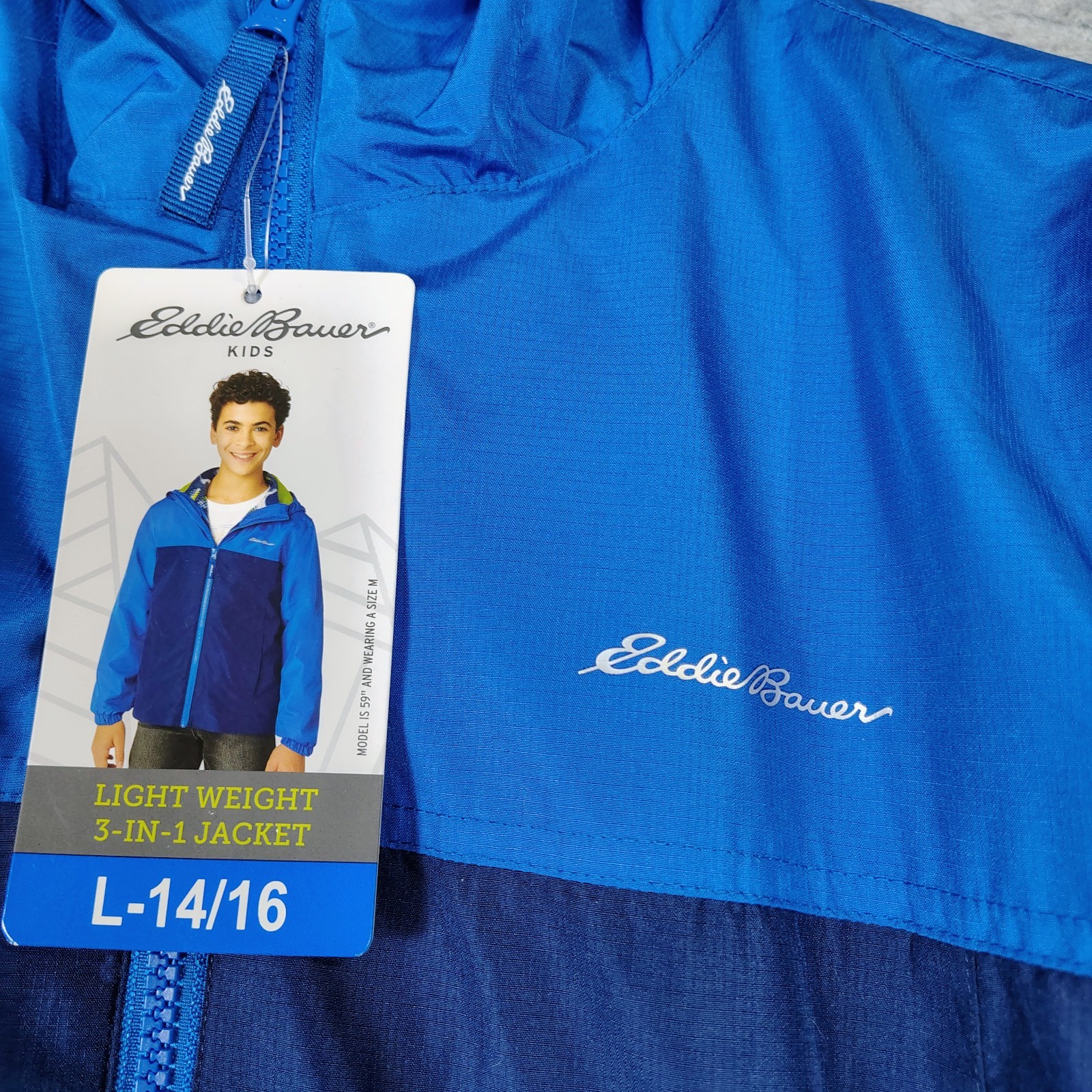 как выглядит Eddie Bauer 3-In-1 Jacket Boys L 14/16 Nautical Blue Full Zip Lightweight NWT фото
