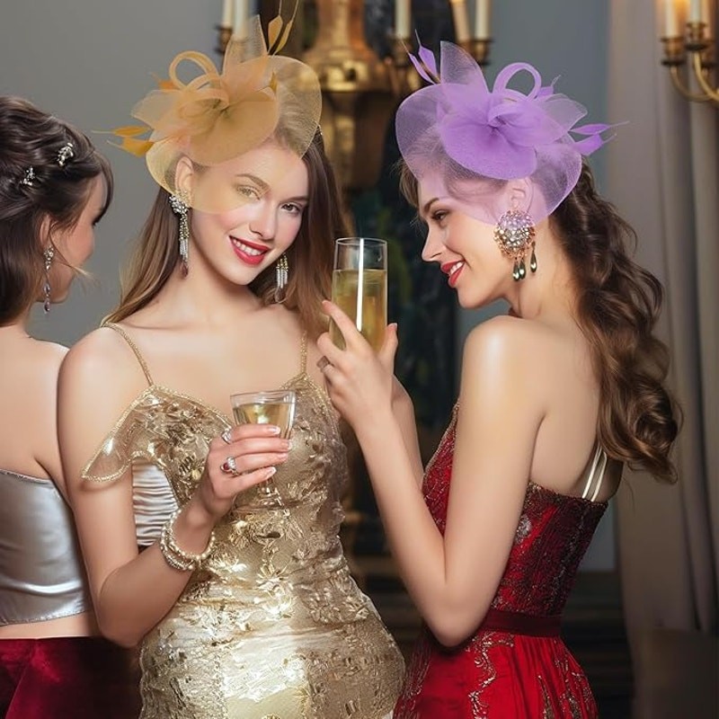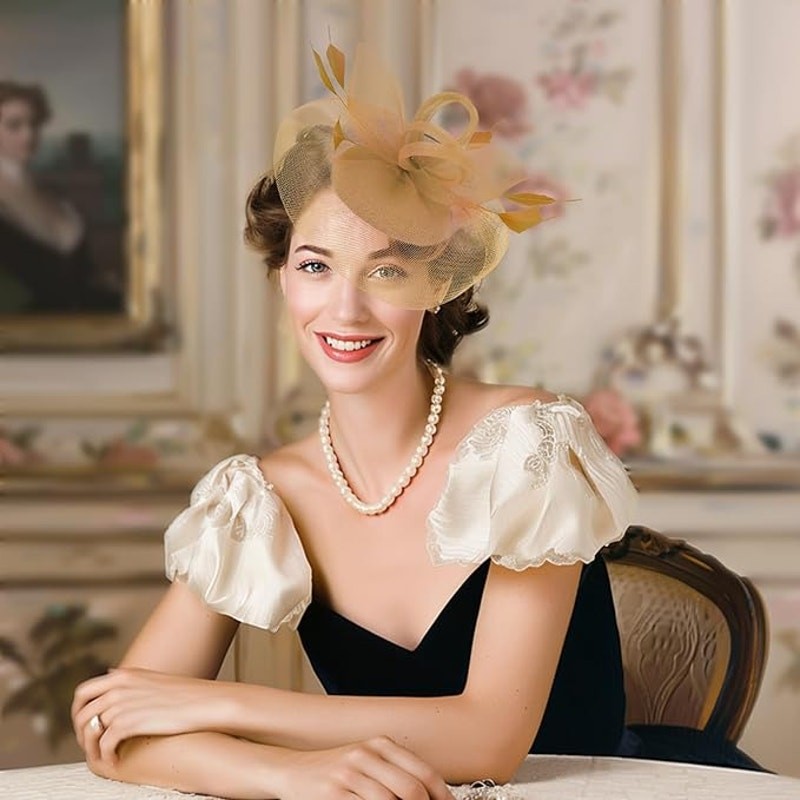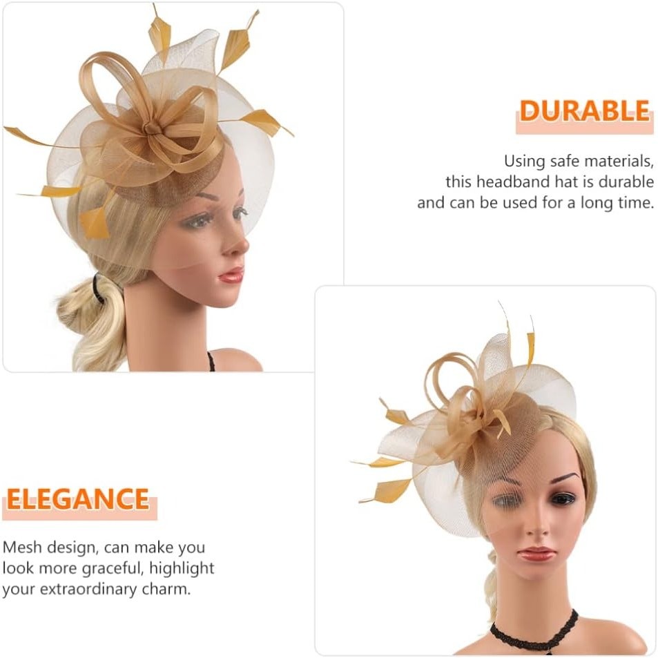 Women Fascinator Hat Kentucky Derby Tea Party Headband Clip Color Gold