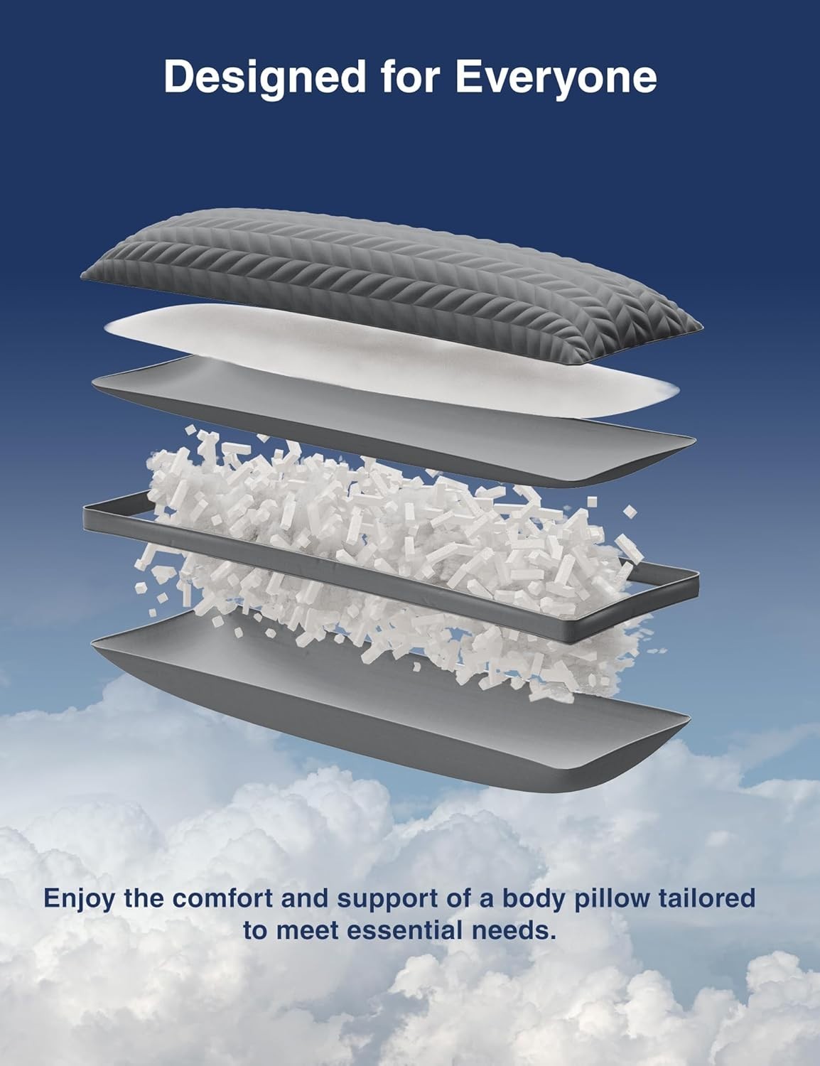 Memory Foam Body Pillow for Side Sleepers, Full-Length, 20x54, Grey, Firm Suppor