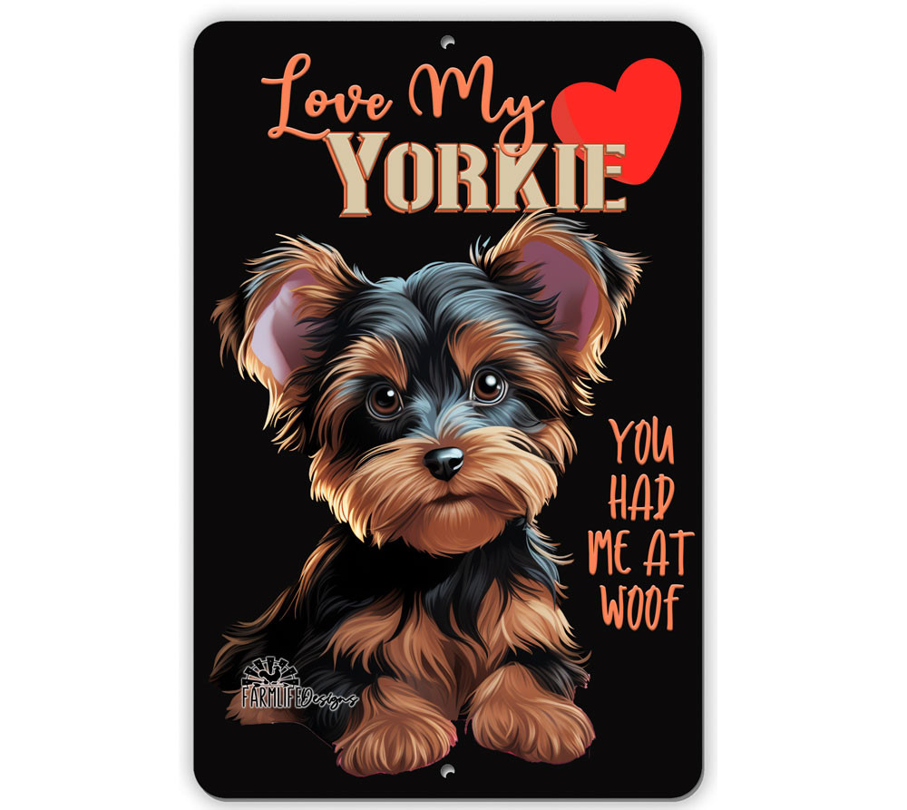 • Yorkshire Terrier Sign Love My Yorkie dog metal tin wall art gift decor plaque