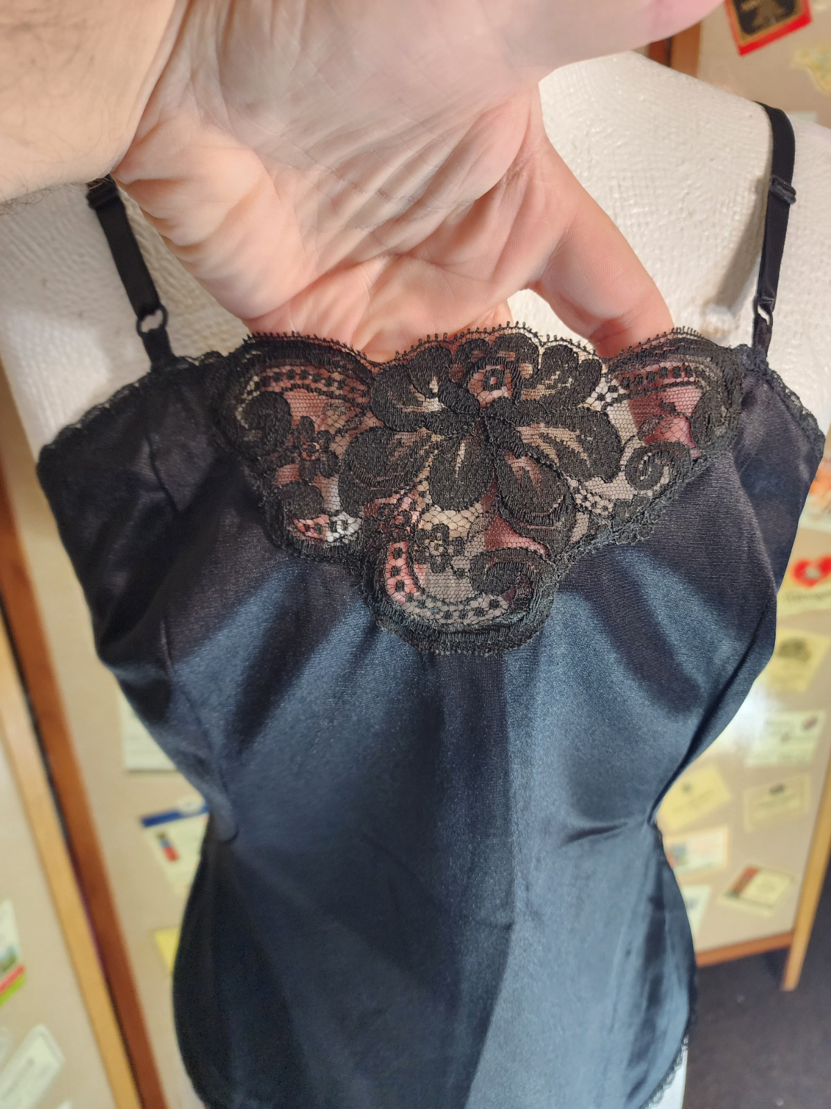 как выглядит Sears The Doesn t Slip Black Nylon Lace Camisole Cami Tank Top Sz 36 Vintage фото