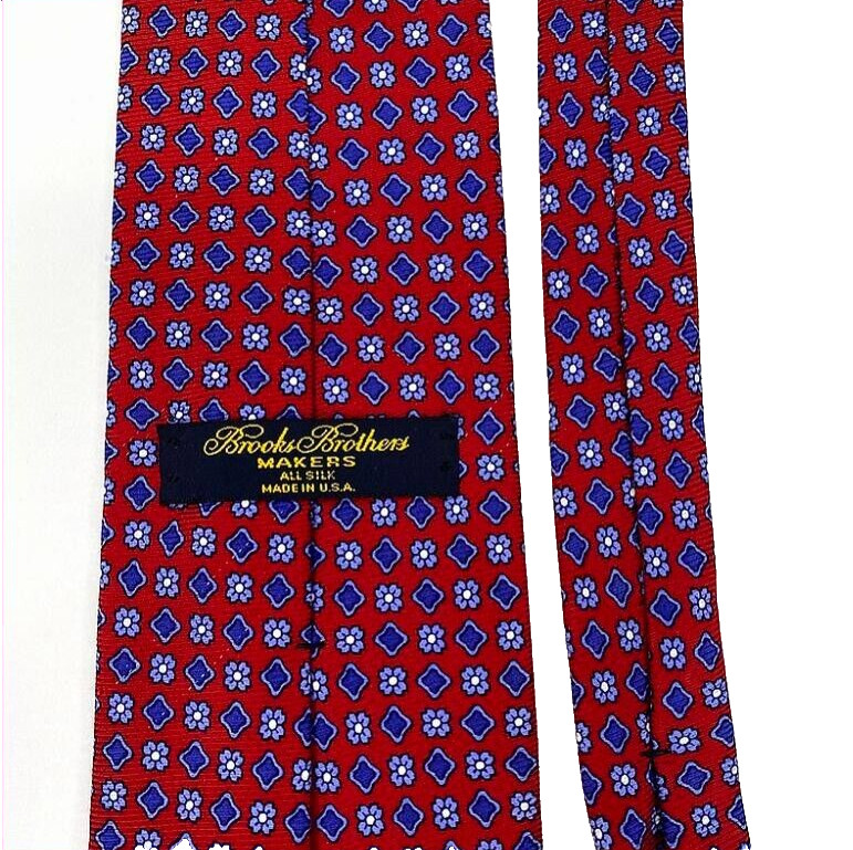 VTG Brooks Brothers Makers All Silk Neck Tie Made USA Red Diamond Floral Mens