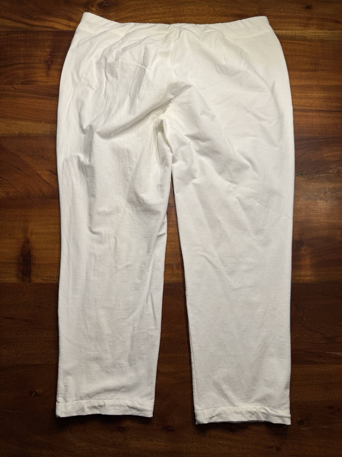 как выглядит Eileen Fisher Pants Womens White Stretch Crepe Knit Pull On Ankle Crop Pant Sz L фото