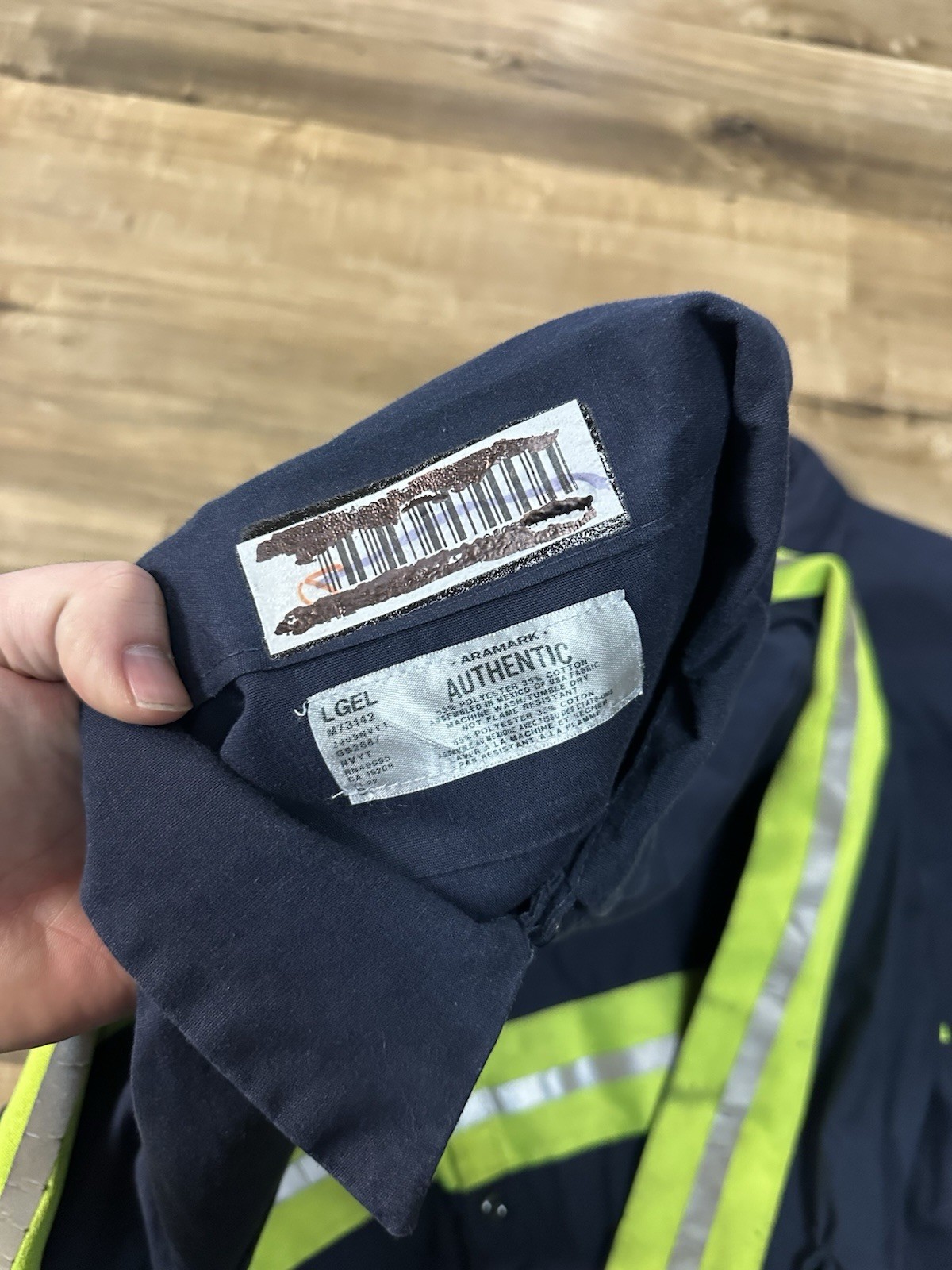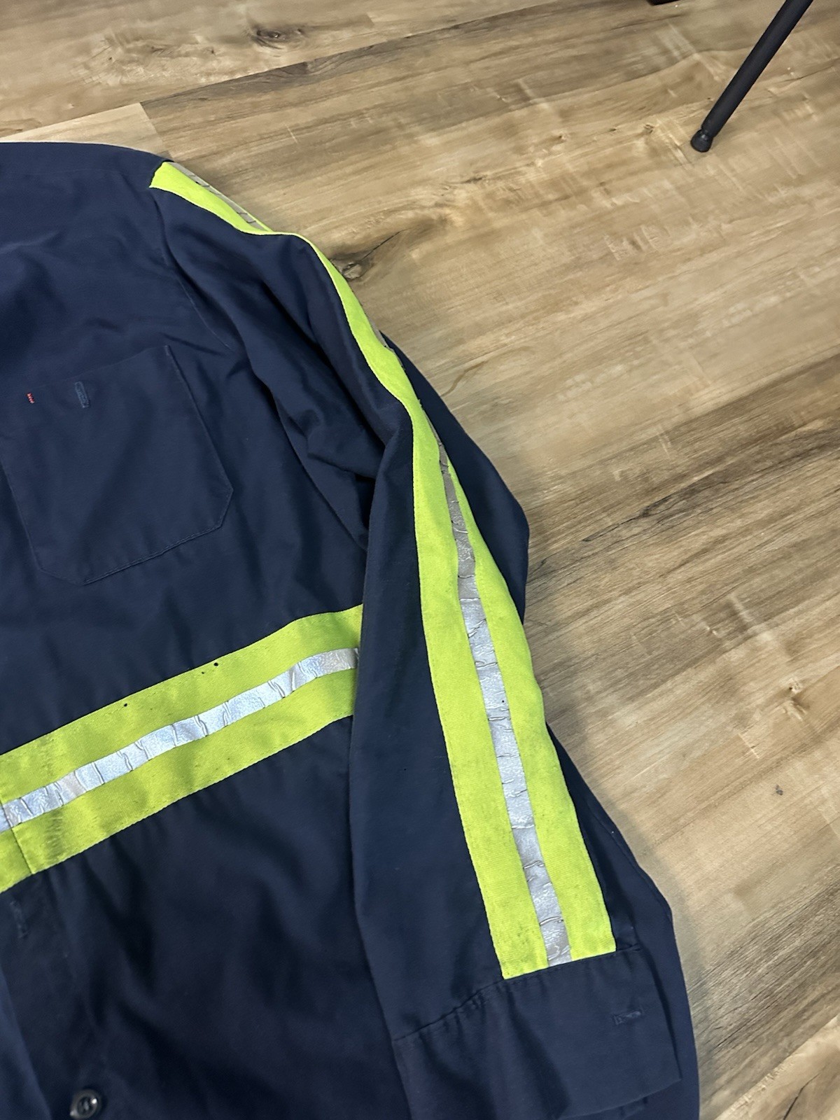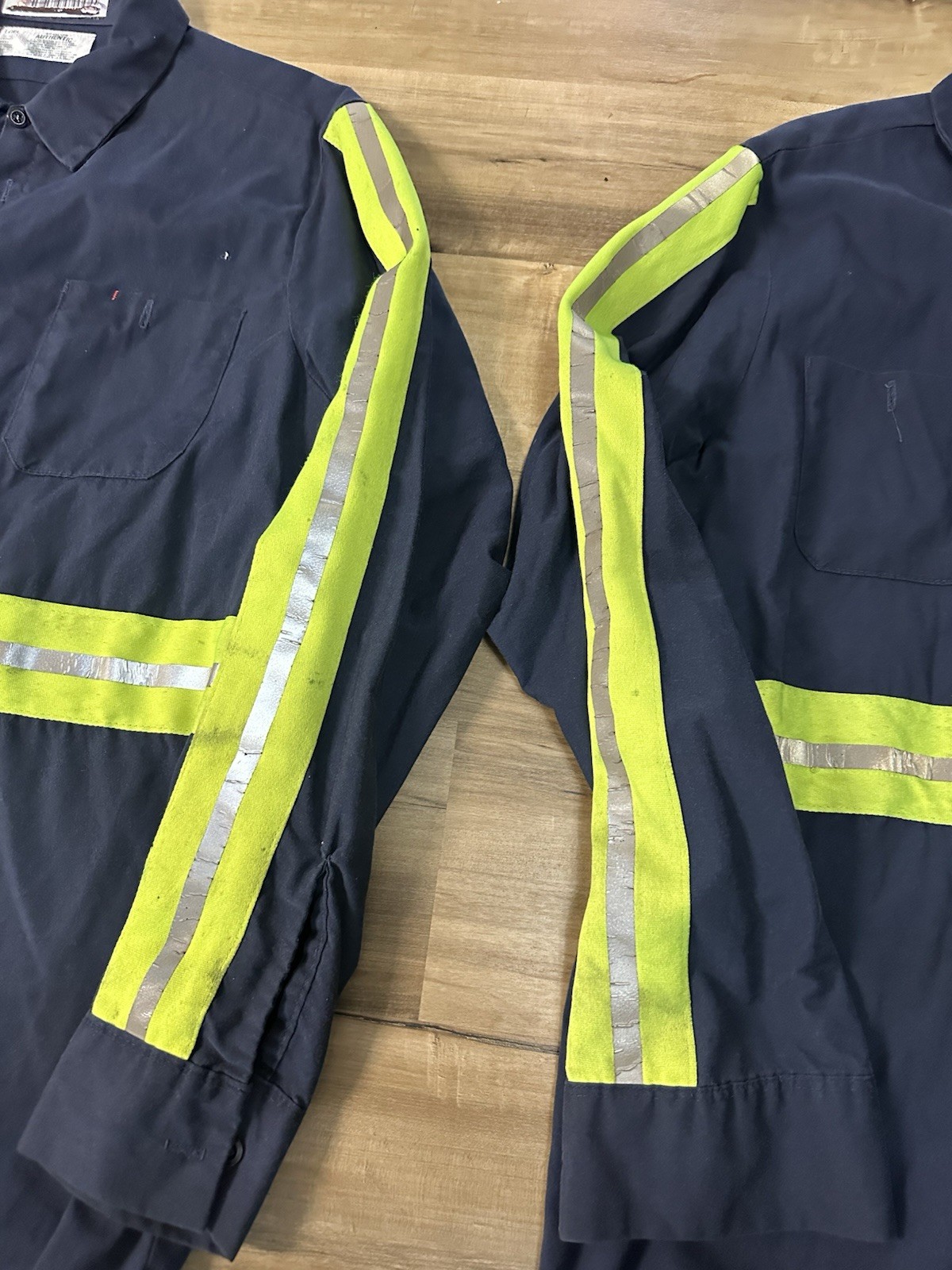 2 Used Work Shirts Sz Large Long High Visibility Hi-Vis Reflective Safety Towing