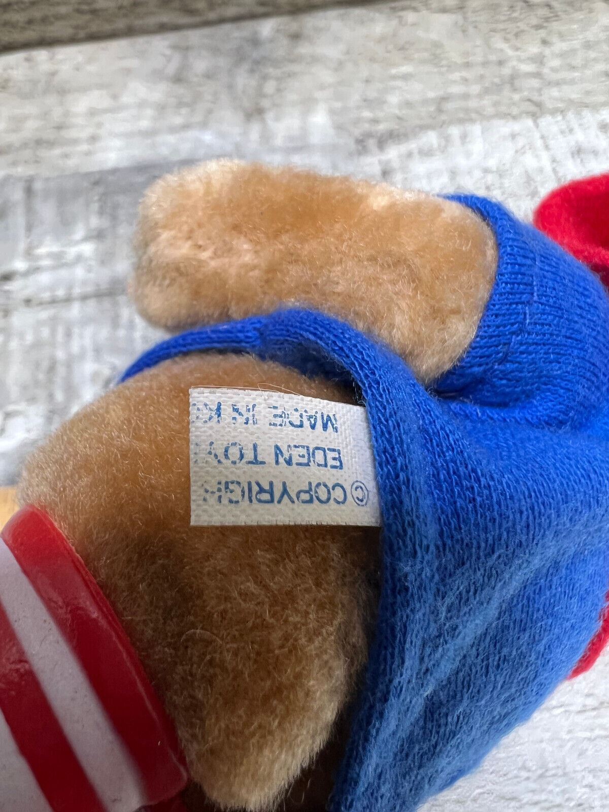 Vintage Eden Toys 1987 Small Plush Paddington Bear with P.B. Club Blue Shirt