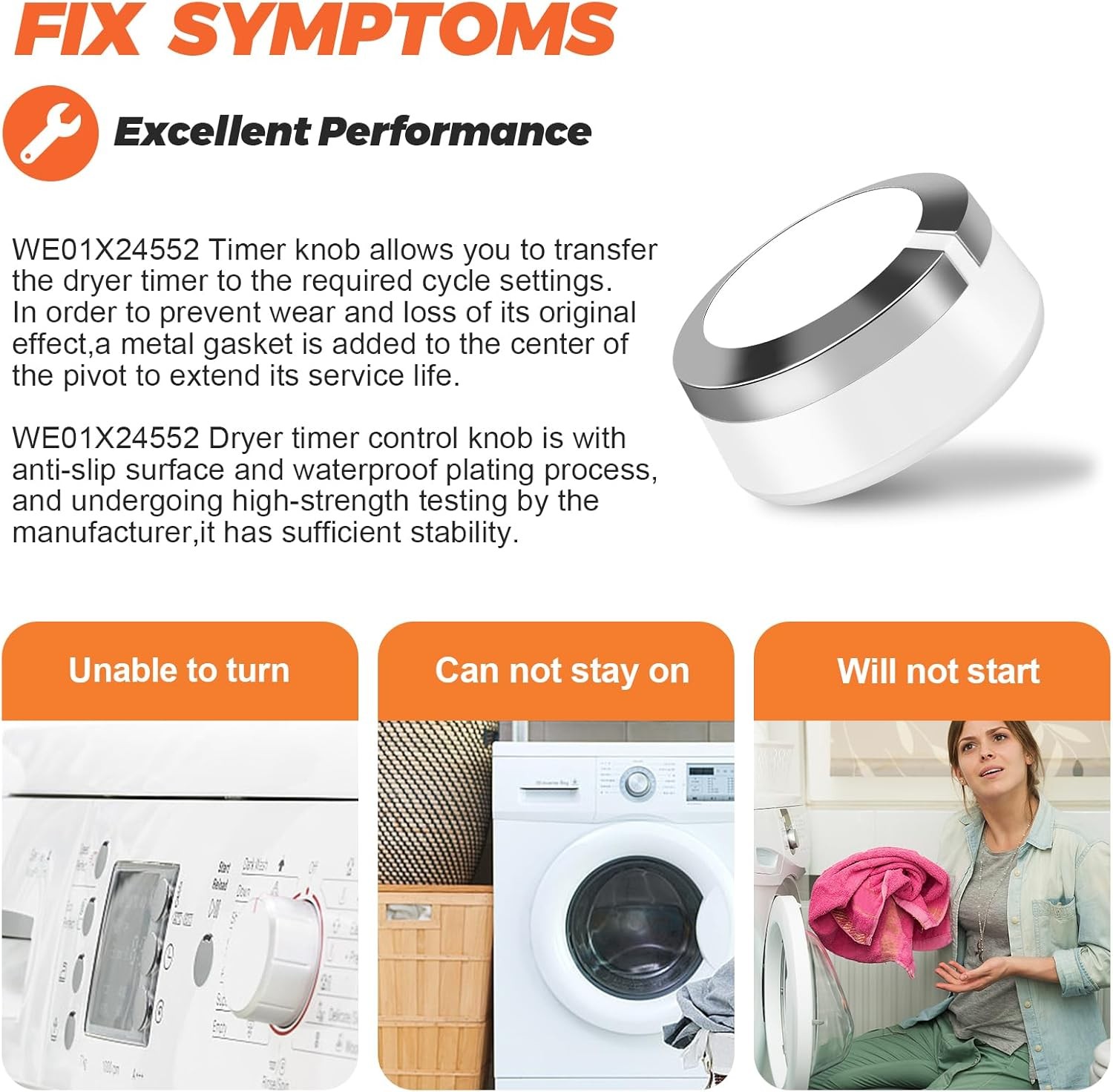 GE WE01X24552 Dryer Timer Knob - White/Chrome Large Knob - NEW