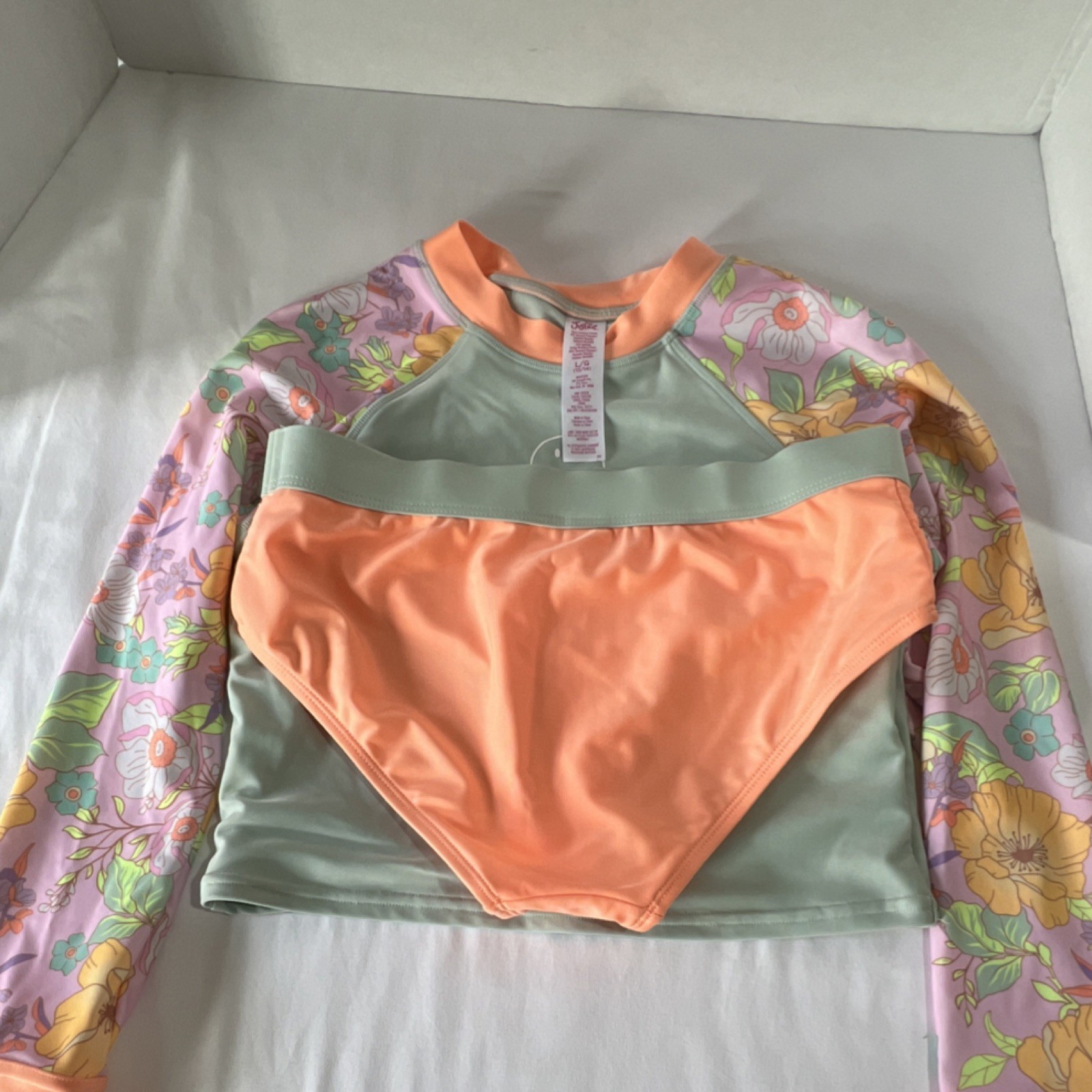 Justice Girls 2-Piece Swim Set Floral Long Sleeve Peach Mint L/G 12/14