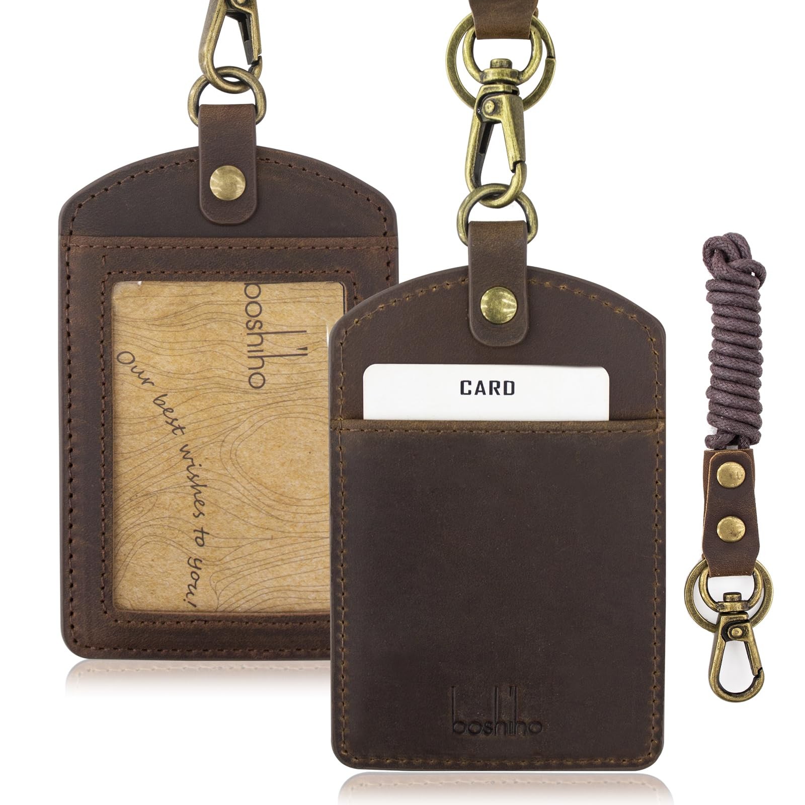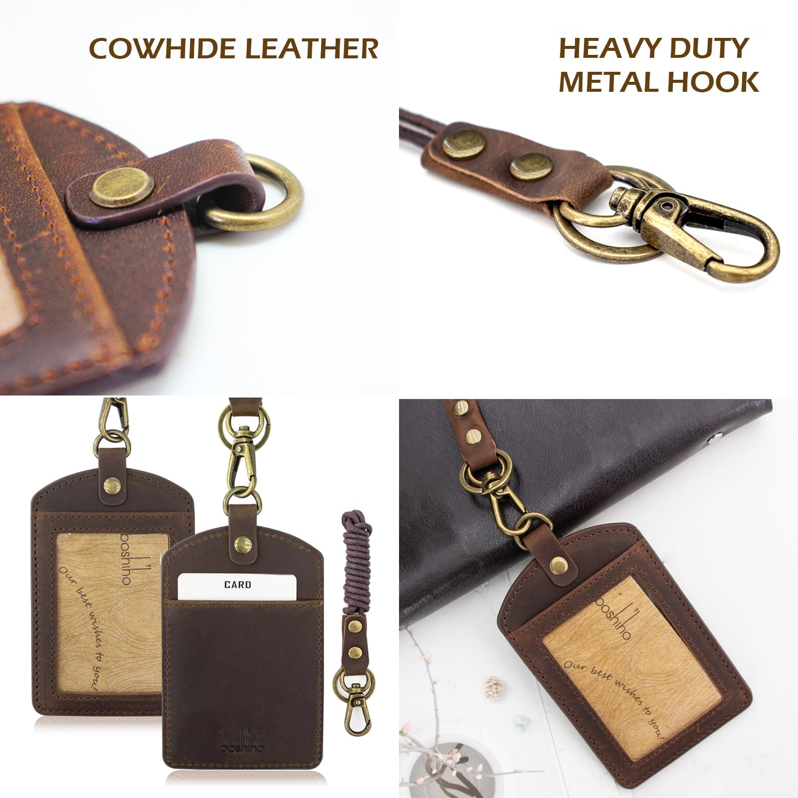 Badge Holder: Cowhide Leather ID Badge Card Holder with 19 Neck Lanyard, Verti