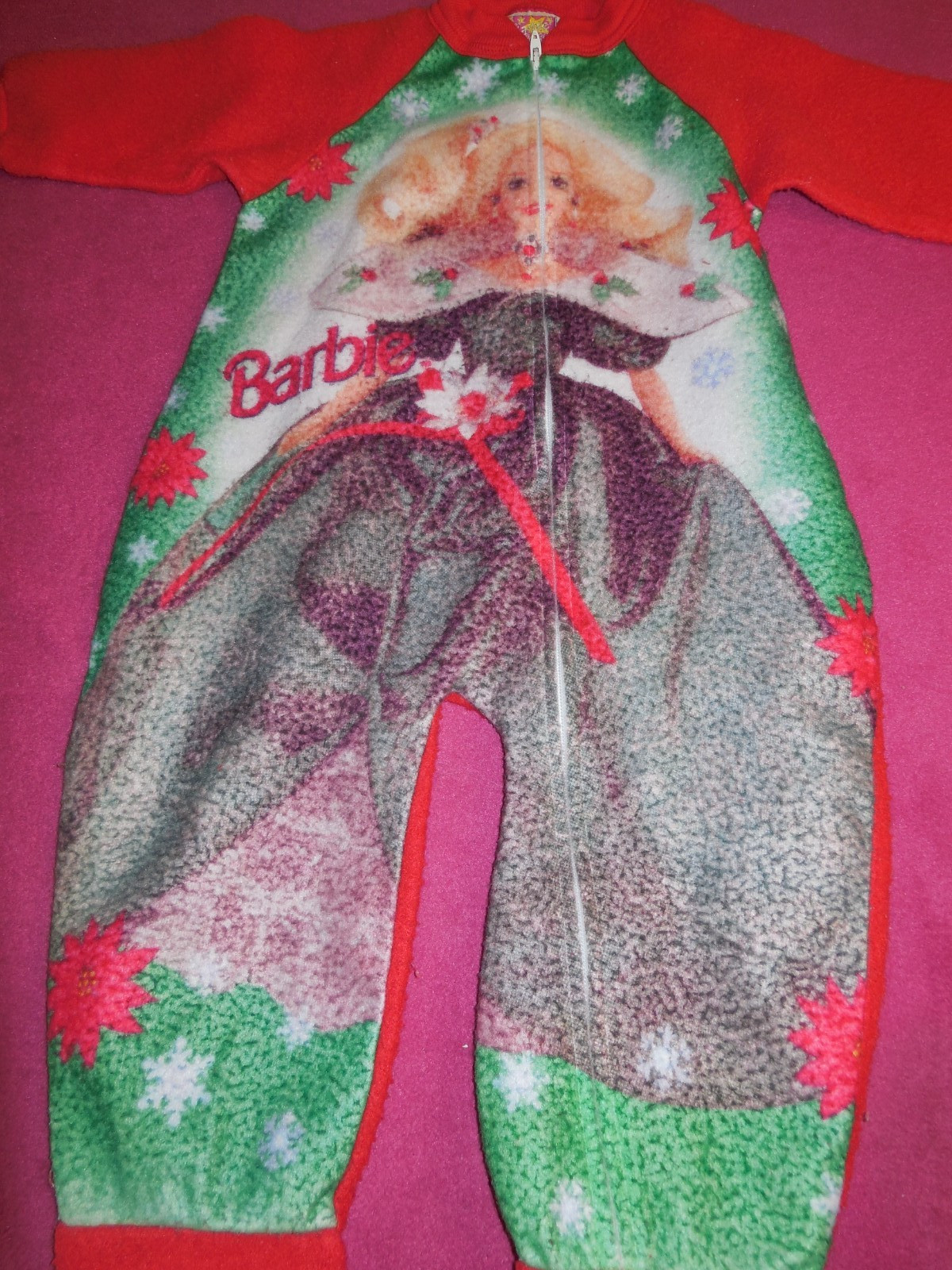 EA1 Vtg 1999 Barbie Pink Zip Up Girls Pajamas Sleeper One piece Size 2