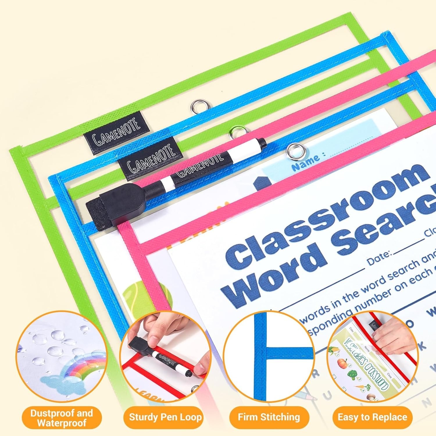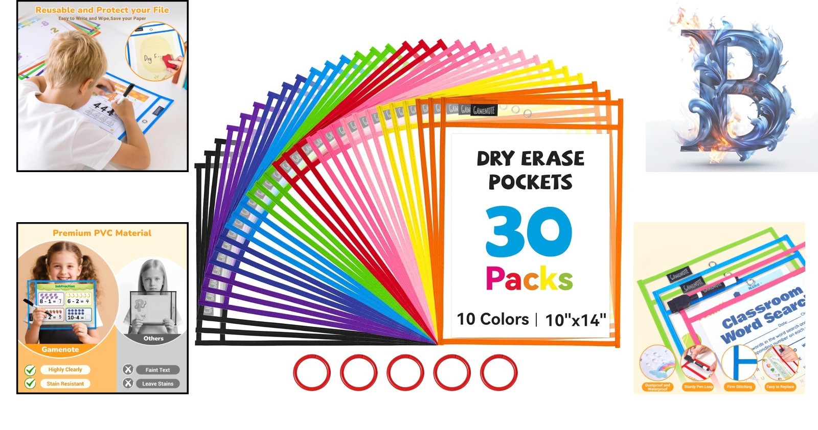 Comprehensive Classroom Kit: 30 Dry Erase Pockets with Colors Rings Included