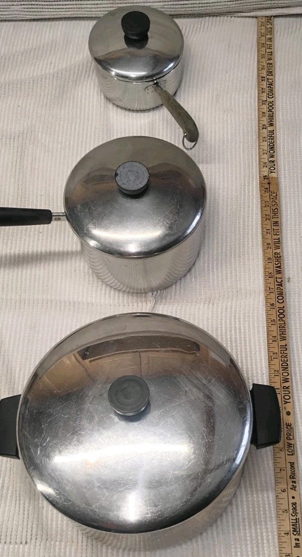 как выглядит Set Of 3 Revere Ware Pots 6, 3, and 1 Qt. With Lids Vintage Lot фото