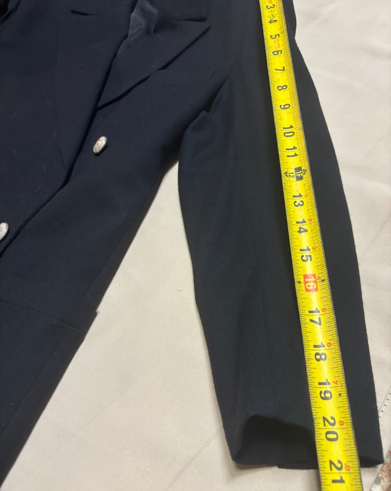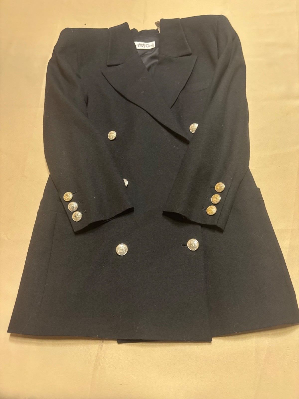 как выглядит Linda Allard Ellen Tracy Black Wool Cashmere Blazer Double Breasted Gold Button фото