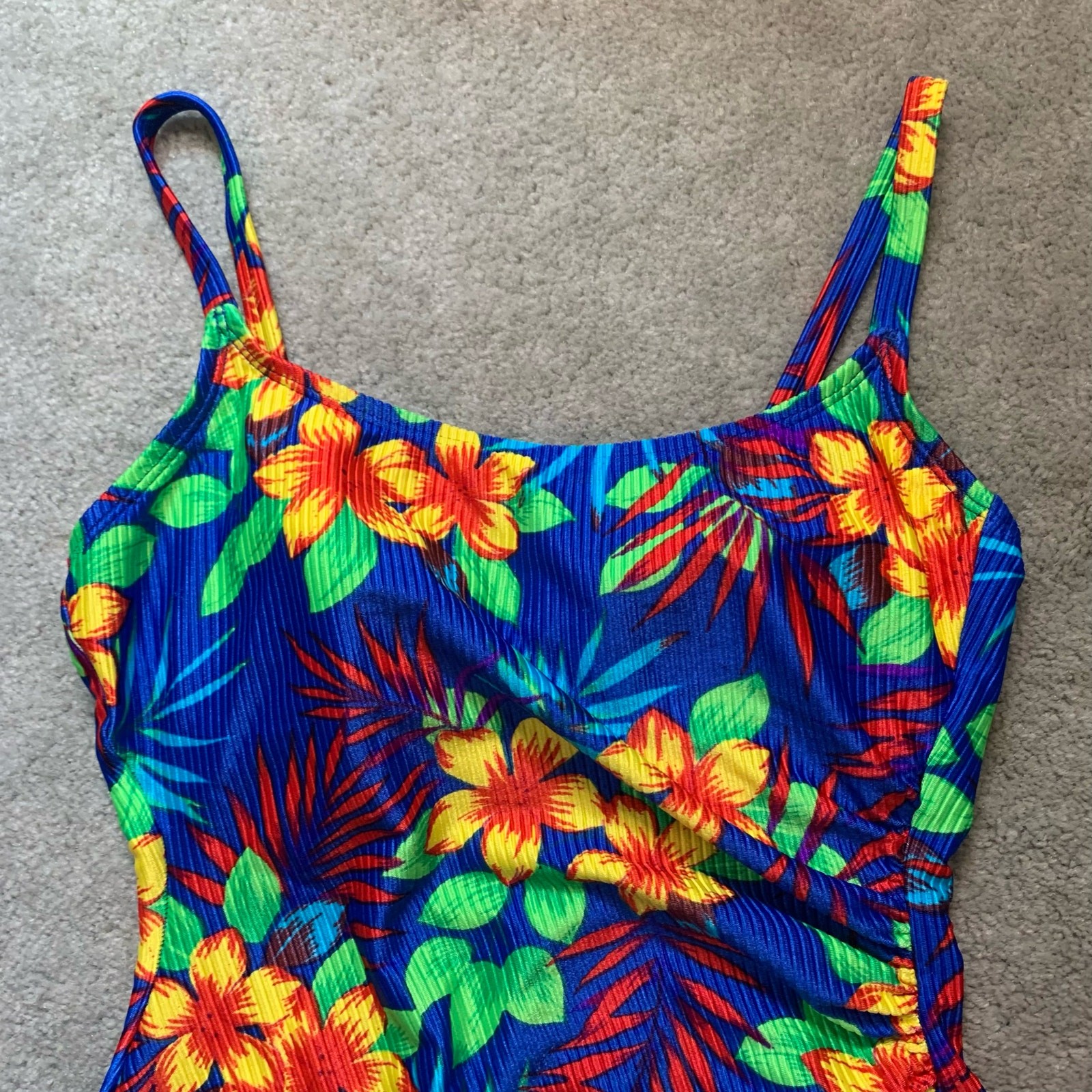 как выглядит Vintage Cole of California Swimsuit Size 6 One Piece Tropical Ribbed Multicolor фото