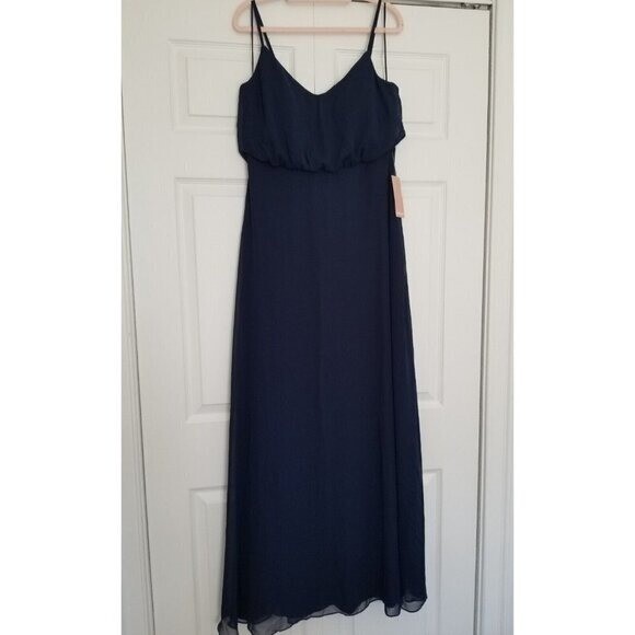 Birdy Grey Gwennie Dress Gown Chiffon Navy Blue Bridesmaid Dress Size Large