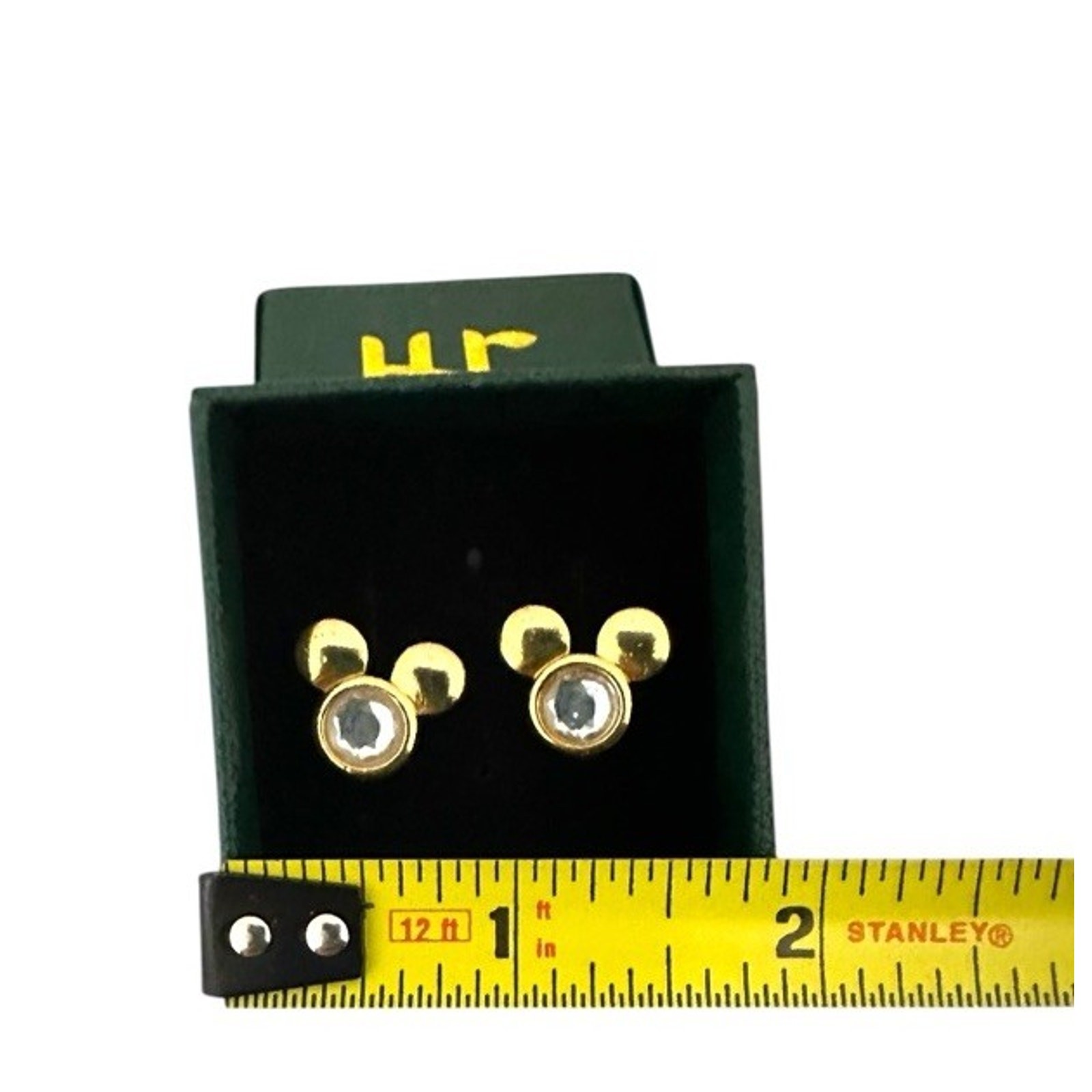• Disney Gold Tone Mickey/Minnie Mouse Rhinestone Earrings Tiny Sparkle Studs Box