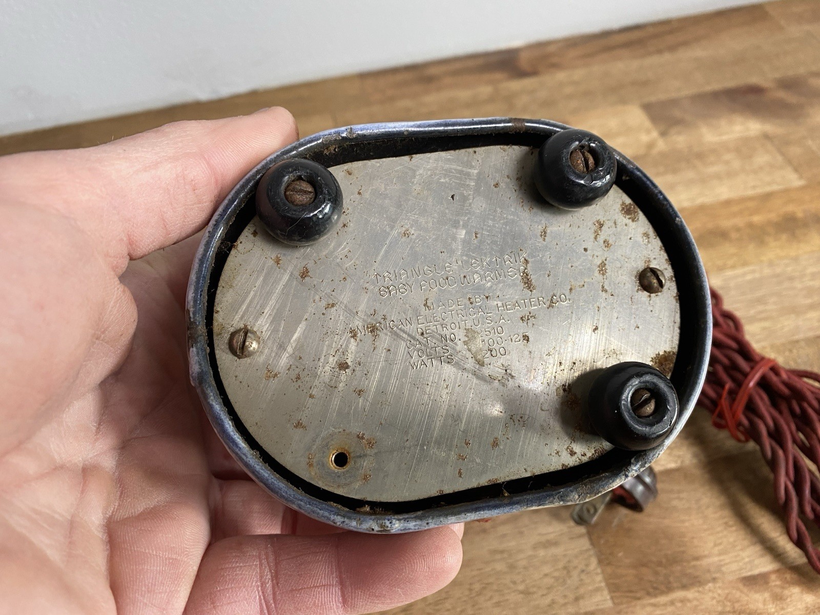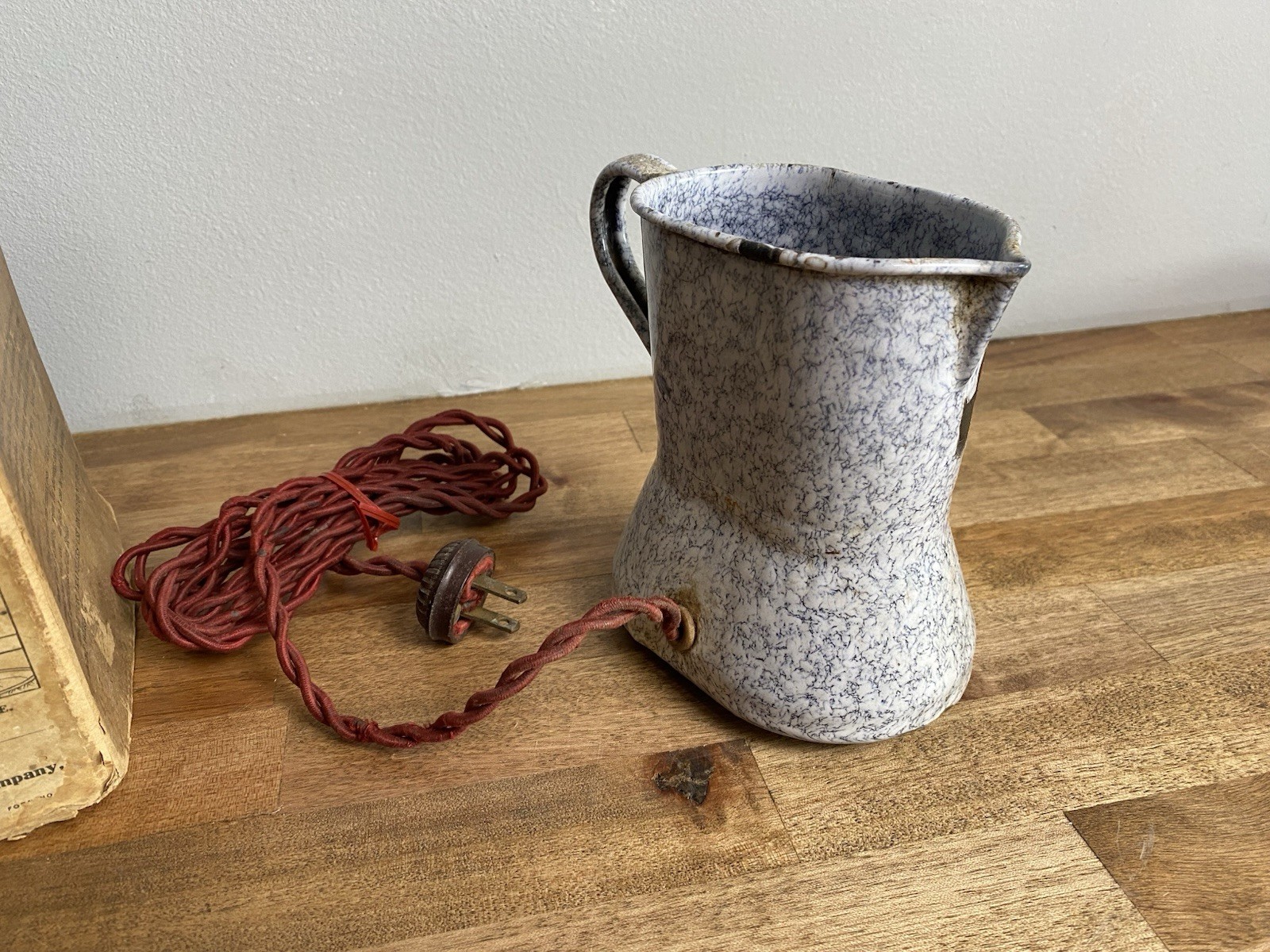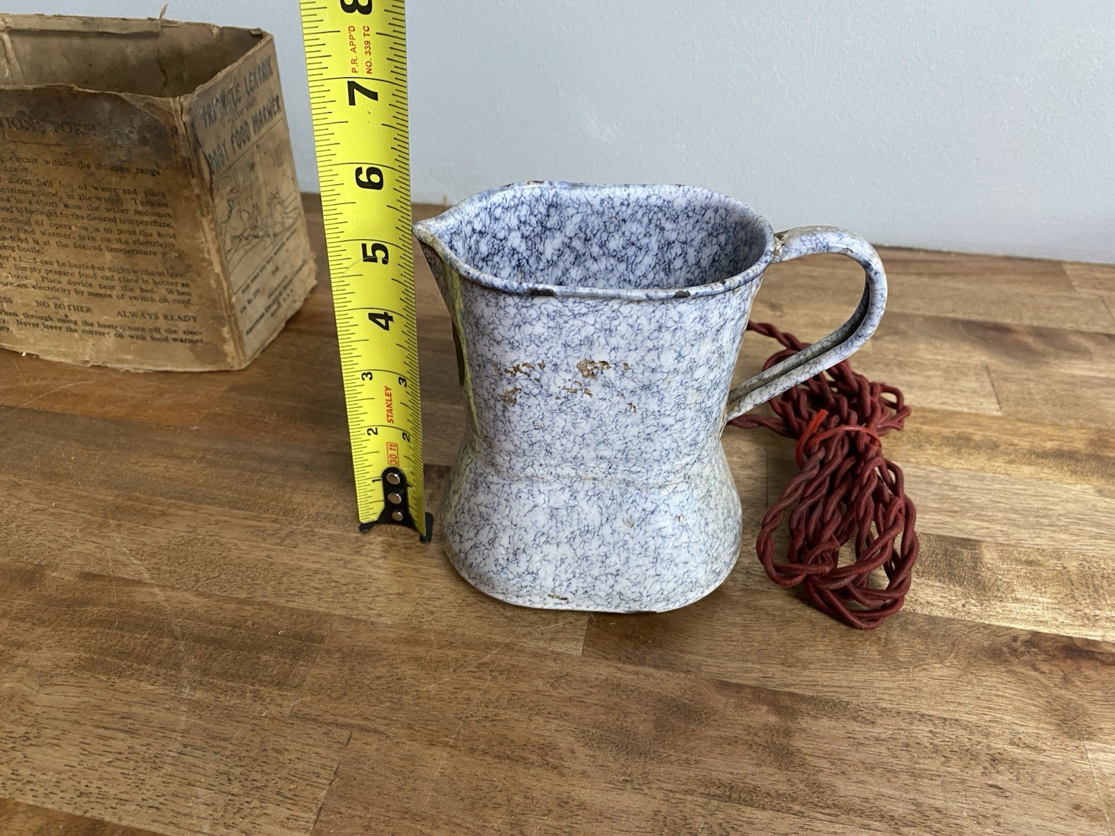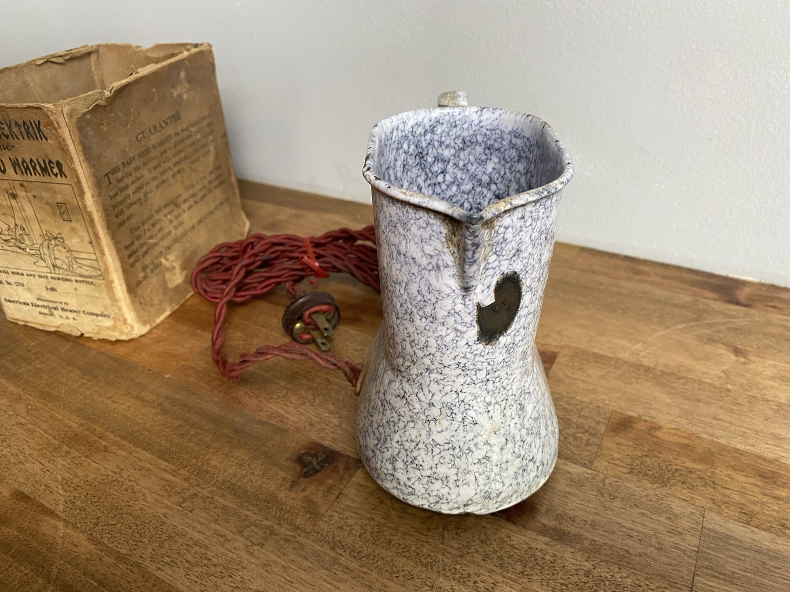 как выглядит Vintage Antique Graniteware Baby Childs Food Warmer - Triangle Lektrik With Box фото