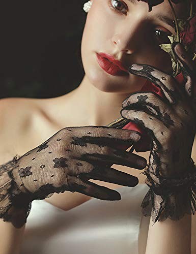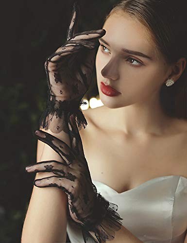 Women's Short Lace Bridal Wedding Party Gloves Vintage Lace Tea One Size Black