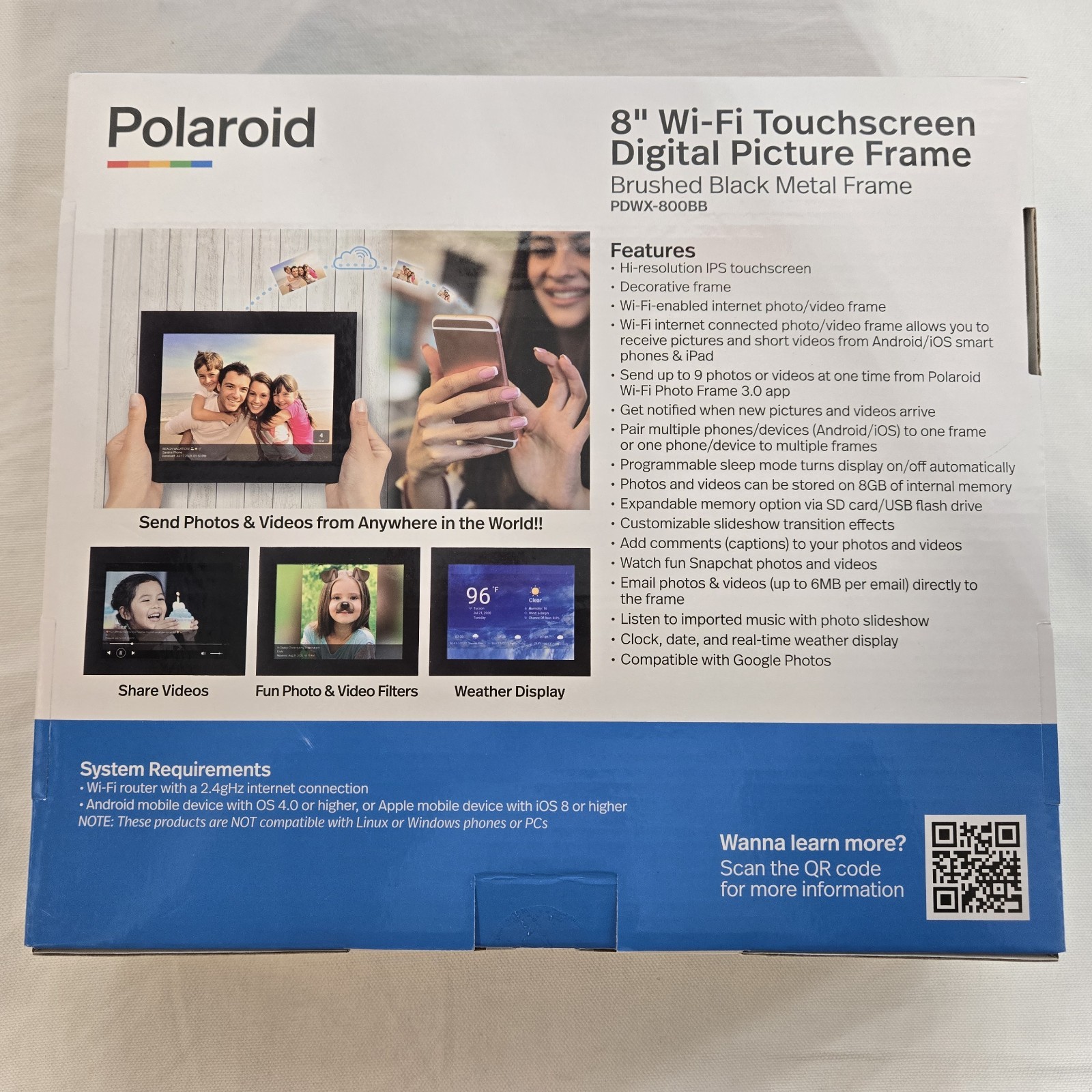 Polaroid 8 Wi-Fi Digital Picture Frame Brushed Black Metal Design PDWX-800BB